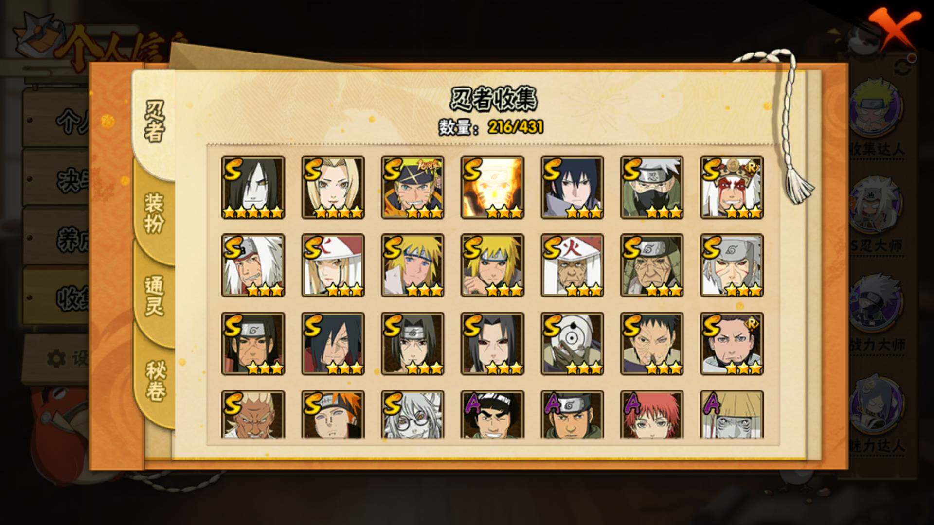 【S级忍者】:猿飞日斩「秽土转生」(3星),波风水门「秽土转生」(3星),千手扉间「秽土转生」(3星),千手柱间「秽土转生」(