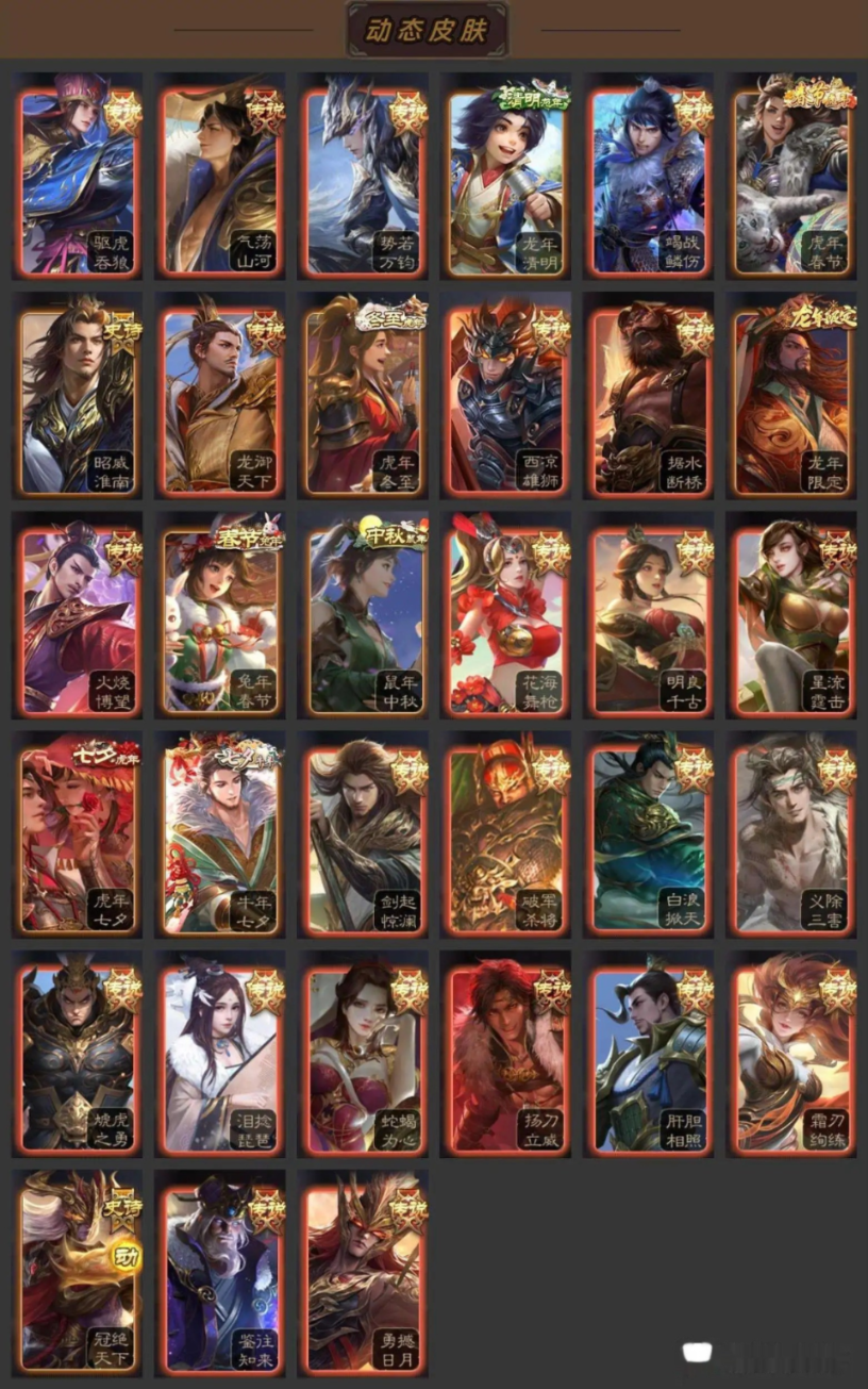 VIP10大将军,344武将,391皮肤,33动皮,32史诗武将:四星关索、四星文鸯、四星界徐盛、四星神司马懿、四星神太史慈、四星裴秀、兀突骨、公孙康、周群、嵇康、左慈、张让、戏志才、星董卓、星黄忠、曹纯、杨修、沙摩柯、沮授、界李儒、神吕布、神吕蒙、神周瑜、神诸葛亮、神赵云、程昱、花鬘、苏飞、许攸、谋张角、谋曹操、谋马超、陈琳、马云騄、麹义 谋甄姬、谋小乔、张绣、星徐晃 冠绝天下·神吕布、扬刀