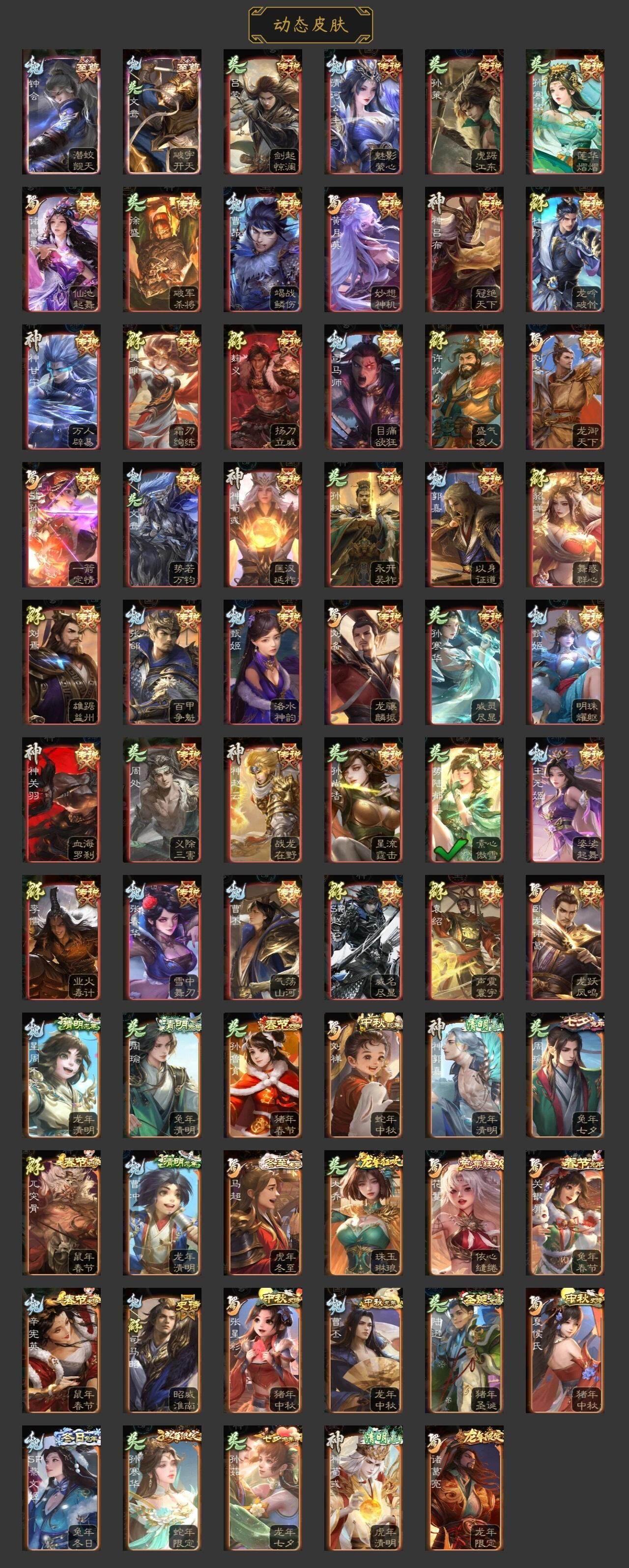 神吕布,神赵云,神陆逊,神刘备,神甘宁,神张辽,神郭嘉,神荀彧,神诸葛亮,SP司马昭,曹髦,郭女王,星周不疑,谋曹仁,王粲,杨修,王元姬,界钟会,界于禁,界曹真,嵇康,郝昭,陈琳,曹婴,曹纯,戏志才,刘晔,谋夏侯惇,谋曹丕,程昱,关索,谋诸葛亮,马云