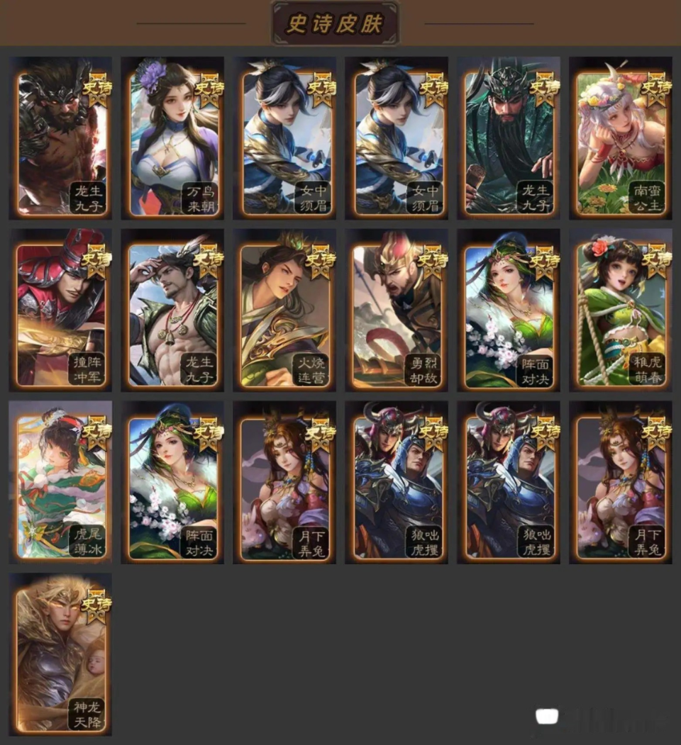 VIP4骠骑将军,240武将,199皮肤,9动皮,2史诗宝珠,16史诗武将:四星文鸯、四星界李儒、兀突骨、左慈、星董卓、曹纯、界徐盛、界朱然、界钟会、神吕蒙、神赵云、程昱、谋张角、郑玄、骆统、麹义 谋张飞、李傕,1008点将卡 127换将卡 706手气卡
