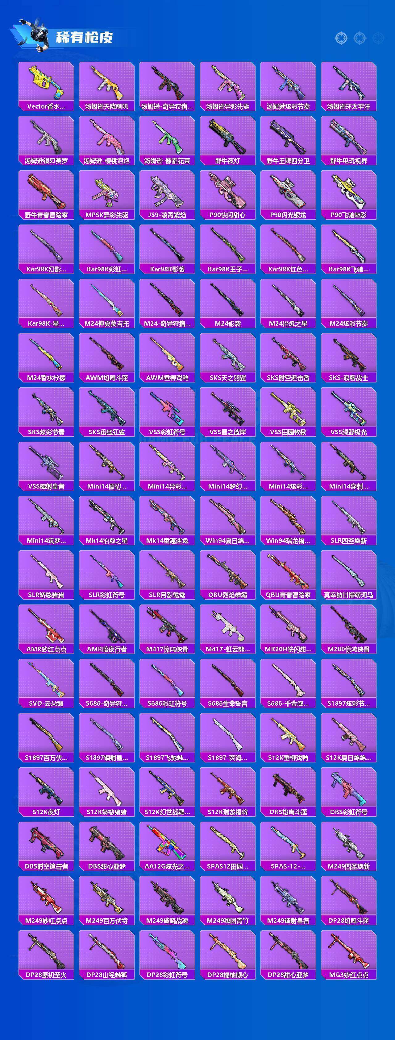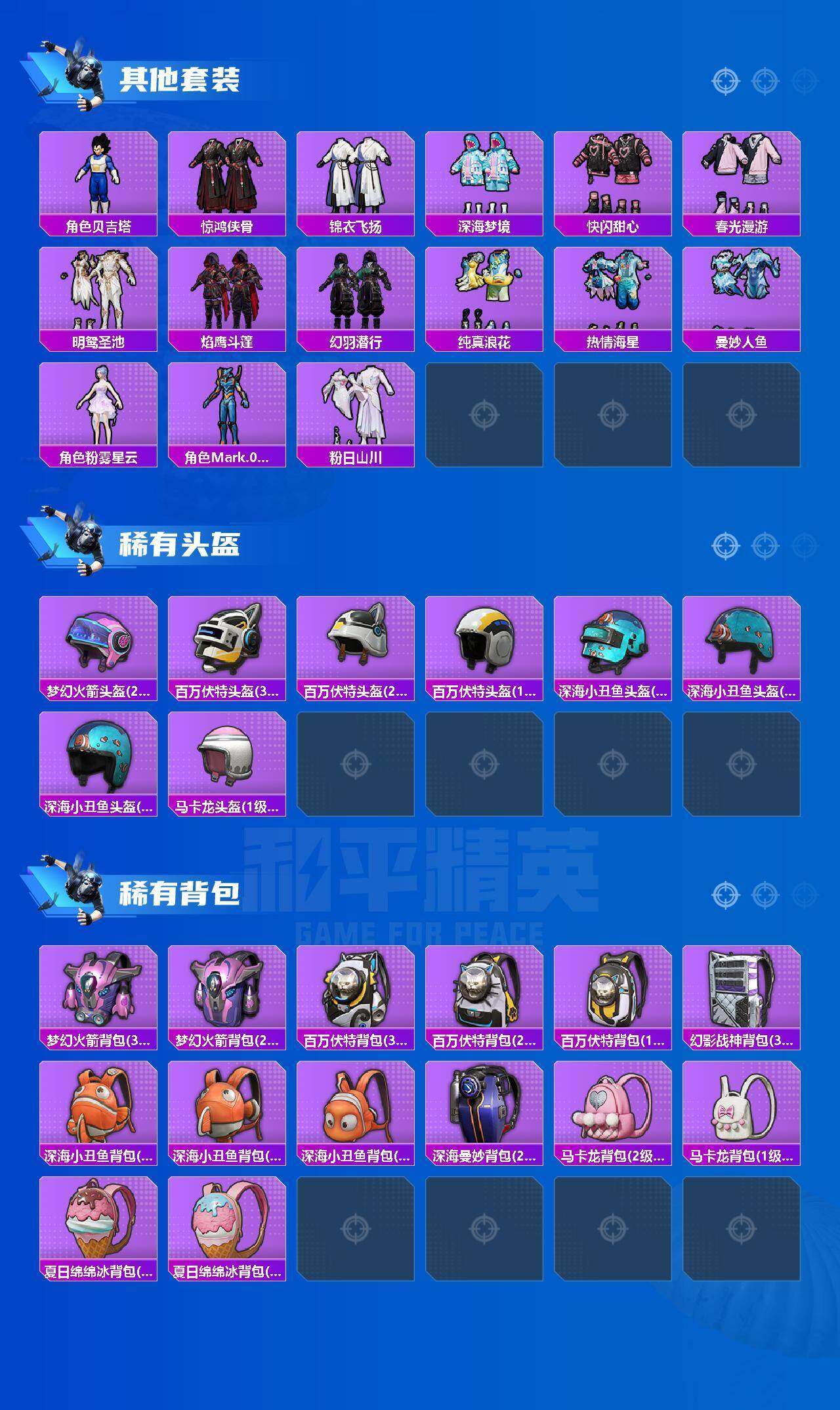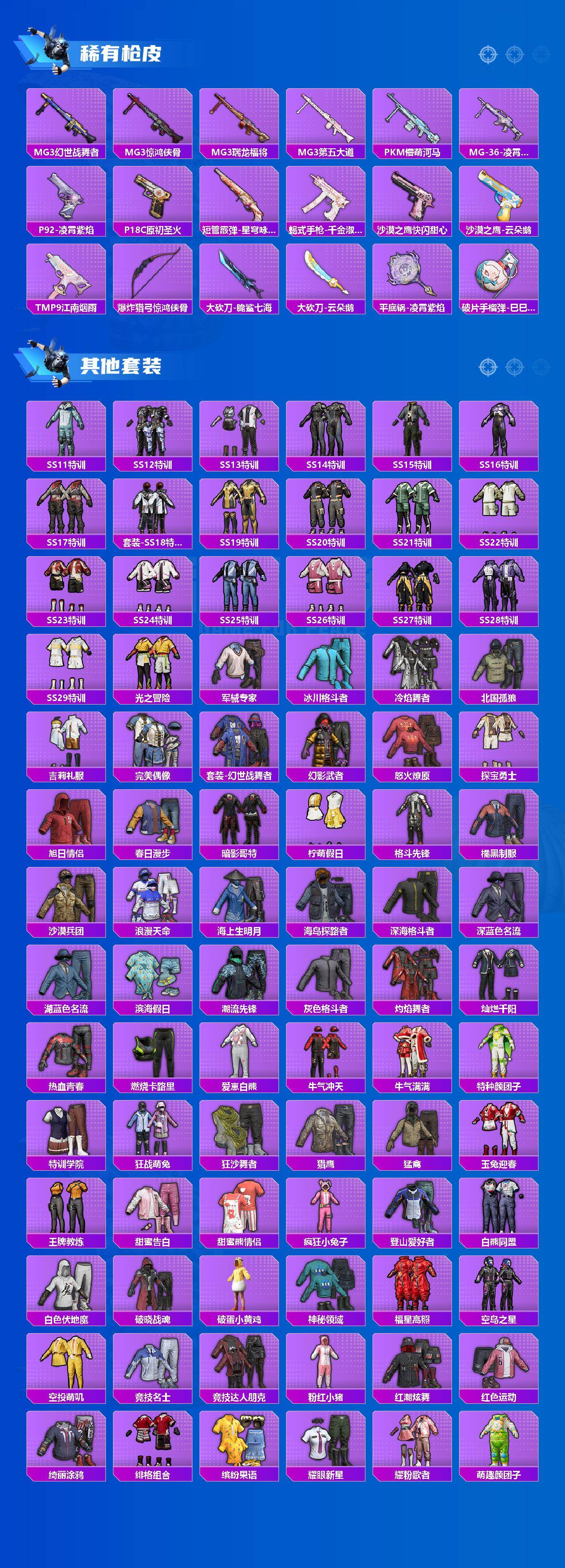 (10粉套9粉枪)都市/浪漫天命/绝对防御上衣/暗影哥特/粉红小猪/蓝螳螂/缤纷油彩/新星烈龙/冰霜白皇/王牌四分卫/暗夜玫瑰/第五大道/仲夏莫吉托/炫光之旅/金丰海韵/智耀战神/AKM梦之光华七级/SCARL锦绣绵绵五级/M416风花雪月七级/AKS74U星穹咏叹调七级/SKS碧影闪光七级/MG36沧焰双生五级/没战神框/HP7737-2粉色飞行器-109851热力值-21王牌印记-265套装