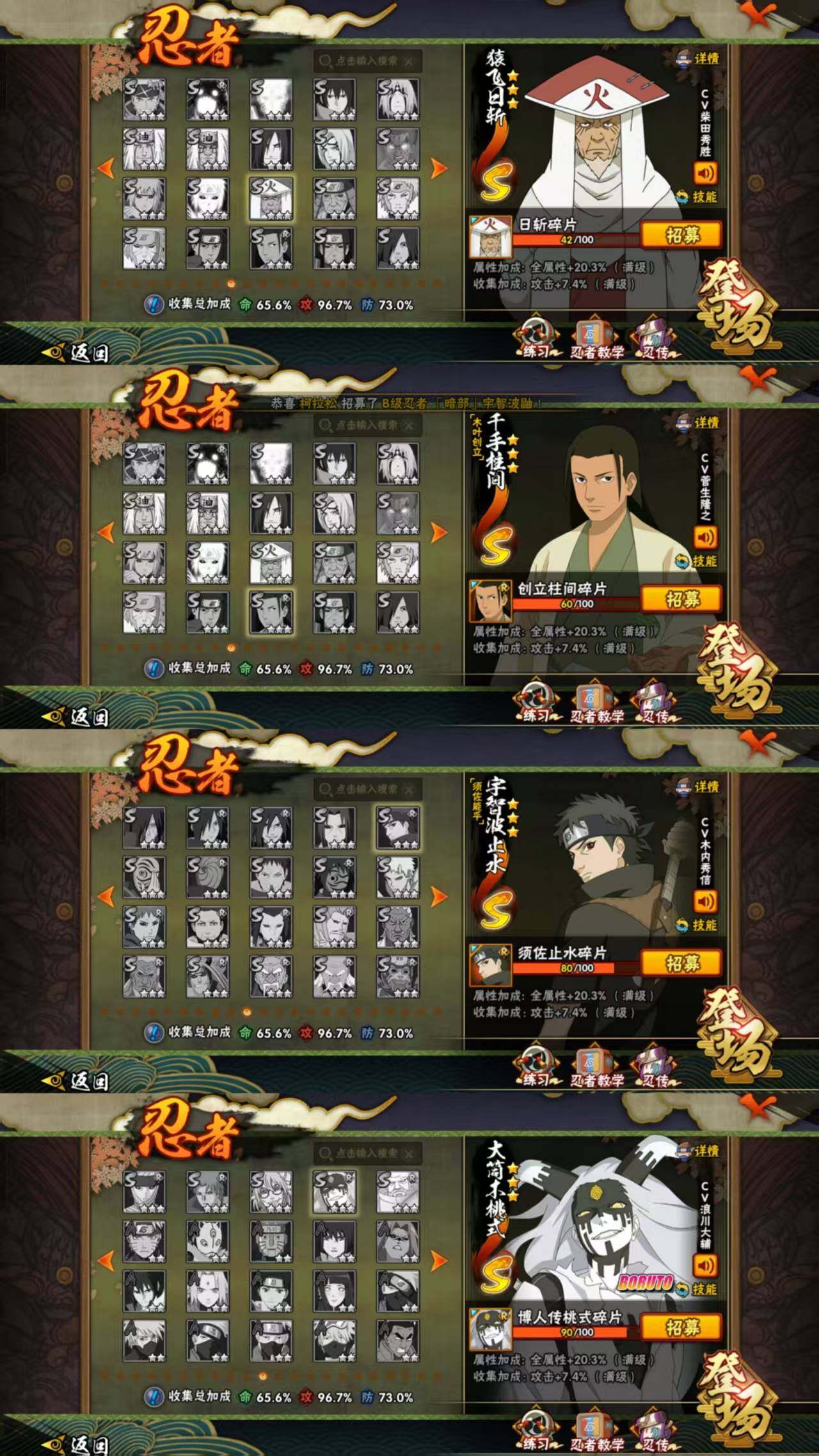 aw68,贵11,809万战,13s忍32a忍,暴怒带土漂泊带土忍战艾白面具须佐卡卡西最终章舍人传说自来也,博人转桃式90碎片,波风水门(4星),旗木卡卡西「须佐能乎」(3星),自来也「舞之豪杰」(3星),自来也「传说中的三忍」(3星),纲手(3星),宇智波斑「秽土转生·解」(3星),宇智波鼬「须佐能乎」(3星),宇智波斑 「白面具」(3星宇智波斑「白面具」),艾「忍界大战」(3星),佩恩「天道
