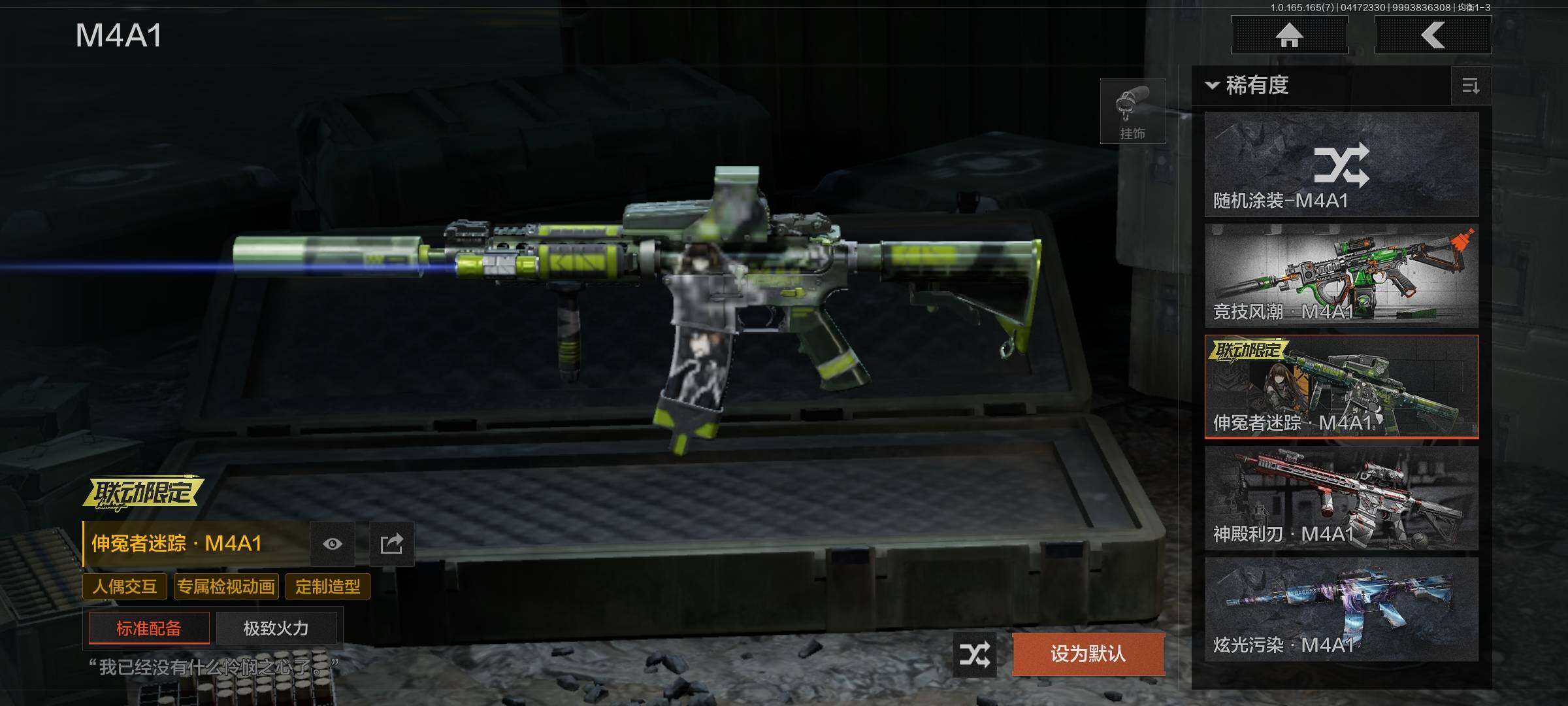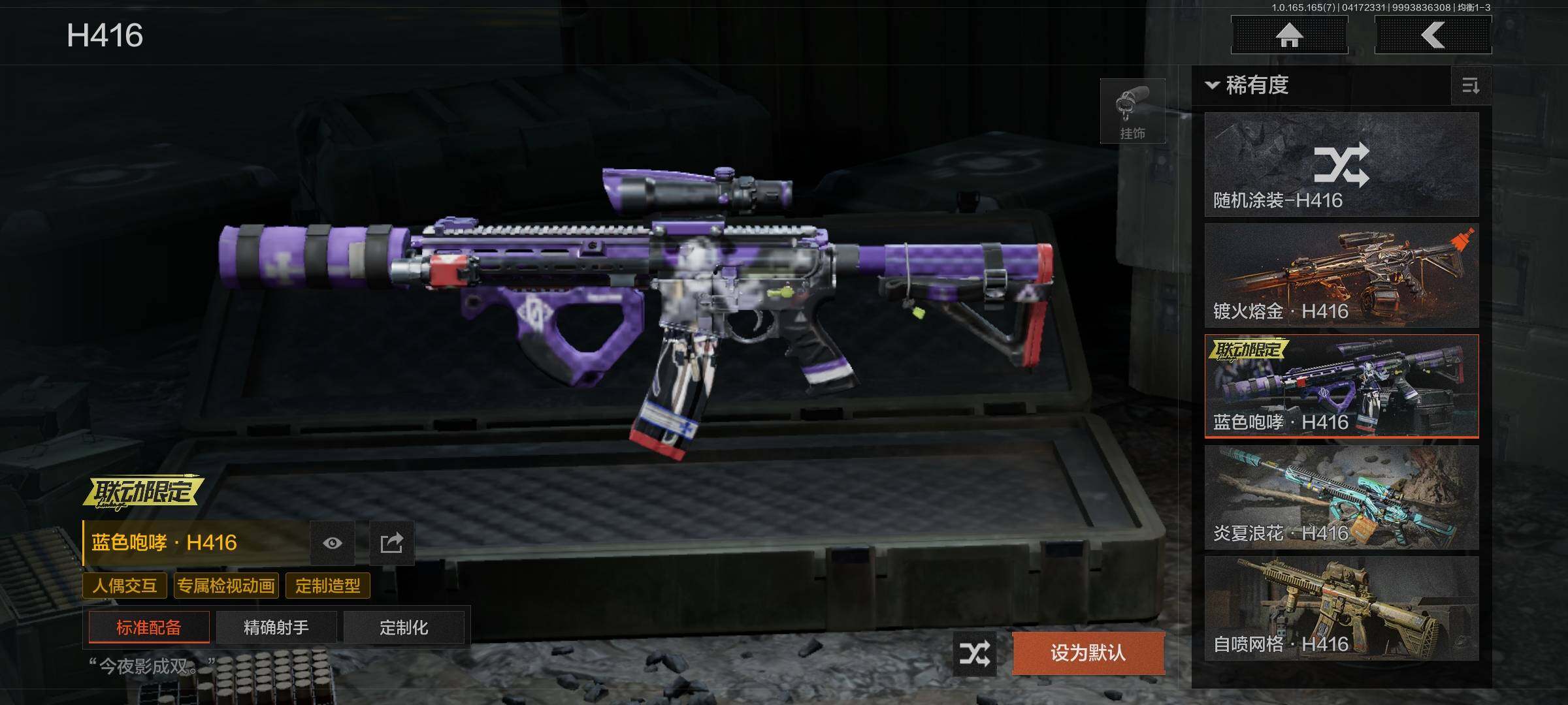 【金色枪皮】:竞技风潮M4A1,伸冤者迷踪M4A1,镀火熔金H416,蓝色咆哮H416,旗帜AEK,利齿风暴MPX