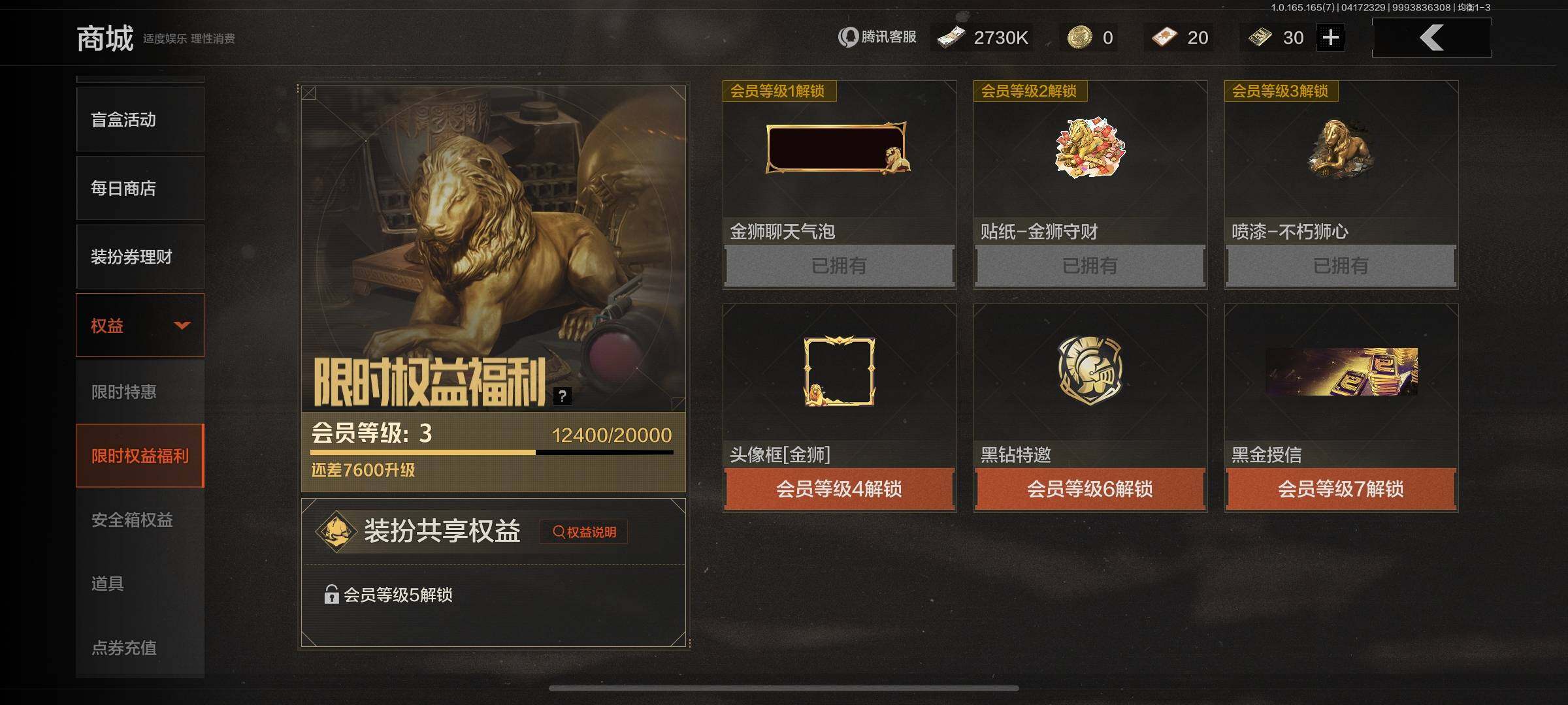 安卓QQ,1把手感不错的刀皮,6把金枪,2个金衣,仓库价值11M,科恩币2730K【勾选了部分装备-详情看图-】