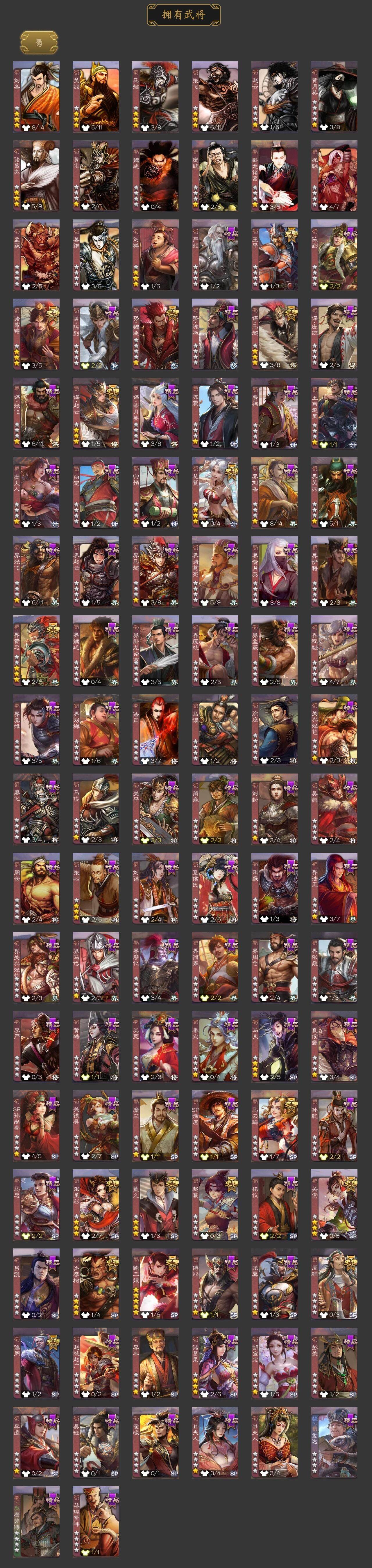 神吕布,神赵云,神司马懿,神刘备,神张辽,神太史慈,神诸葛亮,神鲁肃,神姜维,曹髦,星周不疑,杨修,王元姬,王凌,界钟会,界于禁,界曹真,嵇康,郝昭,曹婴,曹纯,戏志才,刘晔,