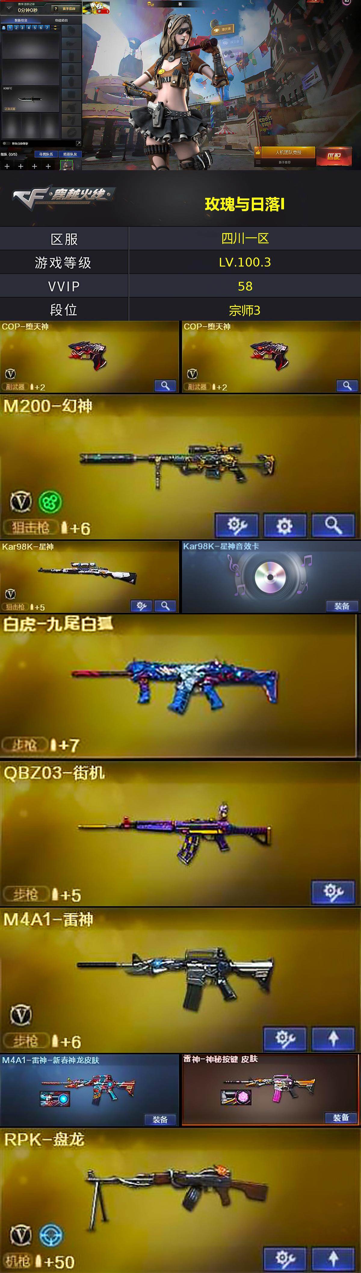 四川一区-59V-1王者武器数-0炫金武器数【热门武器】:M200-幻神,