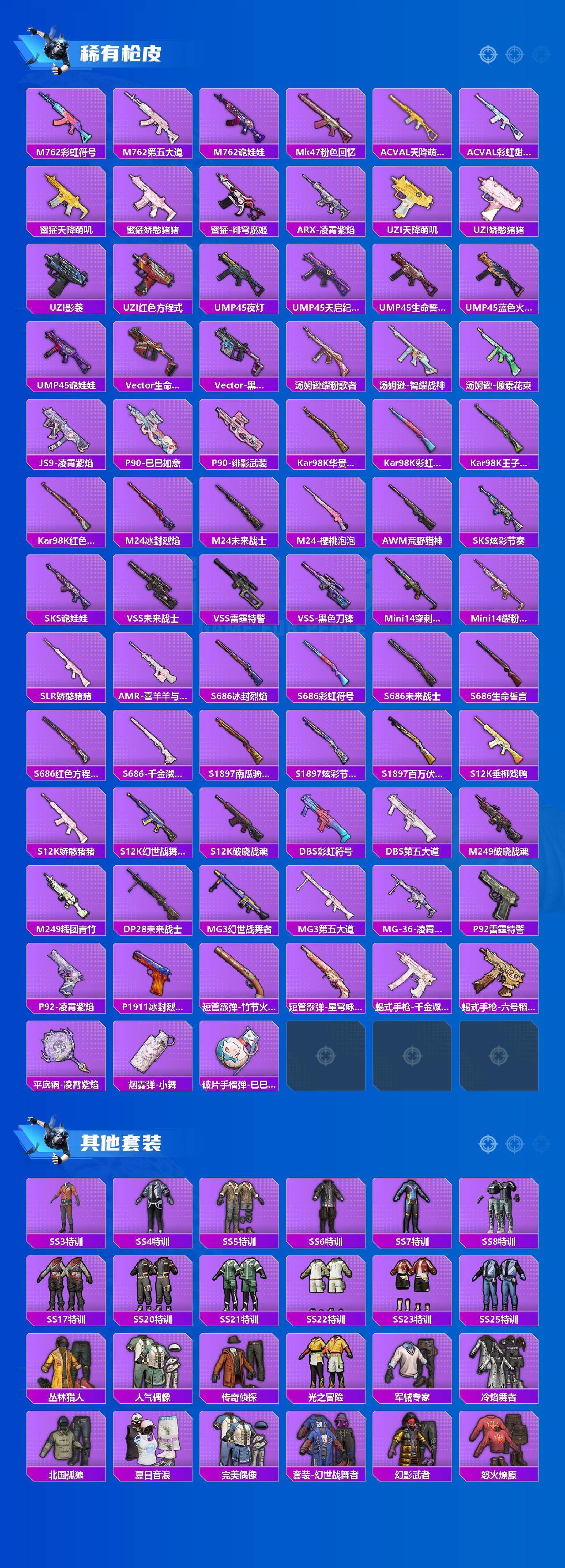 【HP3225】粉装6/粉枪8/载具1/套装170/枪皮190/热力值60116/历史最高段位:王牌印记7次/Lv:70/七级M416-风花雪月/三级ACE32-萌骑漫游/三级UMP45-萌骑冒险/四级AKS-74U-森灵之息/五级Kar98K-巳巳如意/五级Mk14-福马献瑞/四级DP-28-千金淑猫/五级DP-28-豹影疾电/套装-深海小丑鱼/套装-小丑鱼/套装-龟仙人/套装-红熊茄茄/粉装-金属狂野/角色-洛天依/粉装-霓裳武神/角色-千金淑猫/角色-宁雨蝶/角色-镜中幻/玛莎拉蒂Ghib