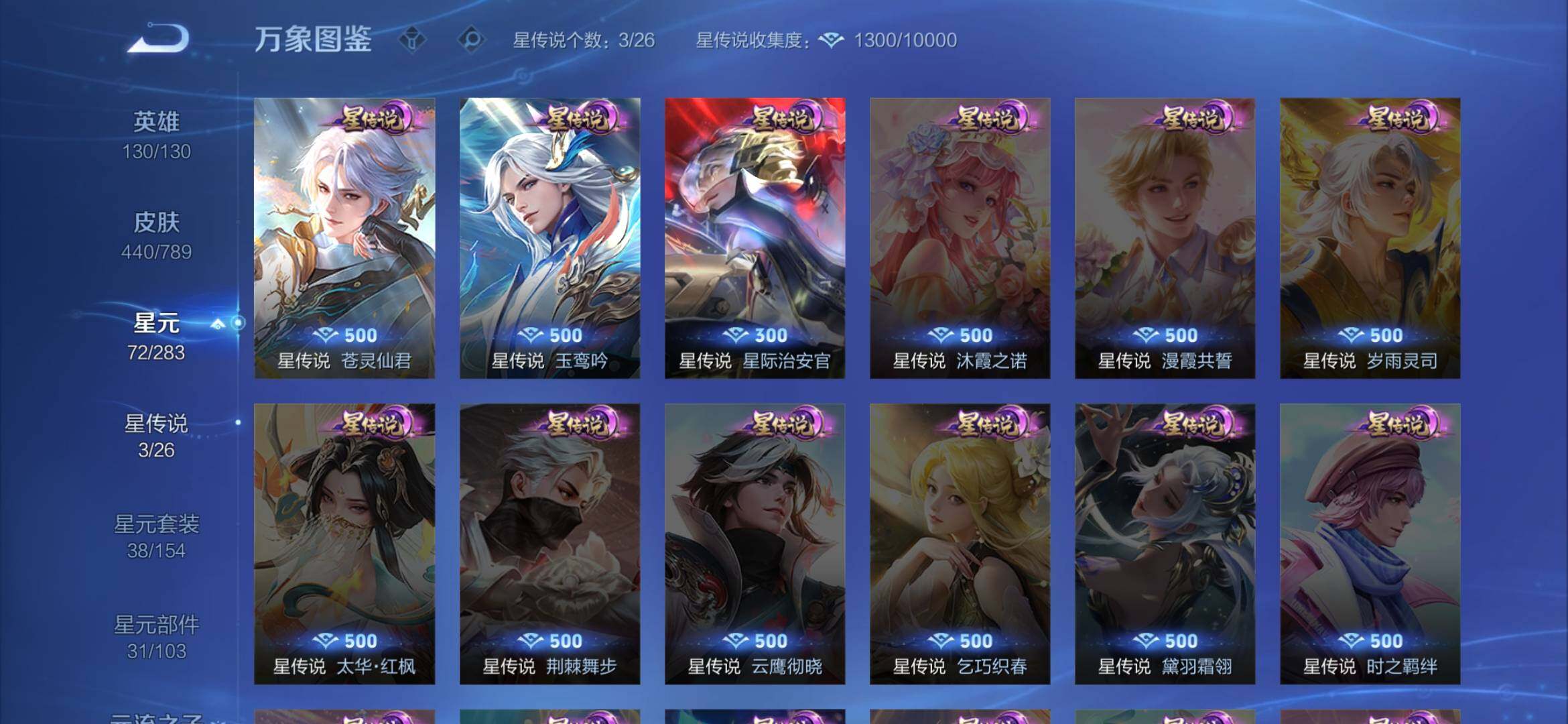 安卓Q-V10-尊贵铂金III段位-130英雄-440皮肤-1典藏皮肤-1典藏英雄-3无双-71传说-140史诗