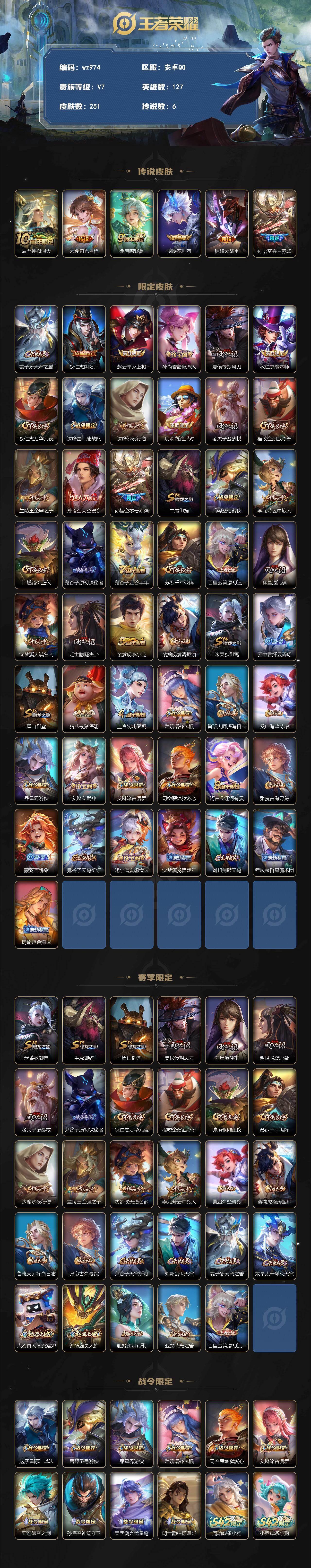 安卓Q-V7-永恒钻石IV段位-127英雄-251皮肤-6传