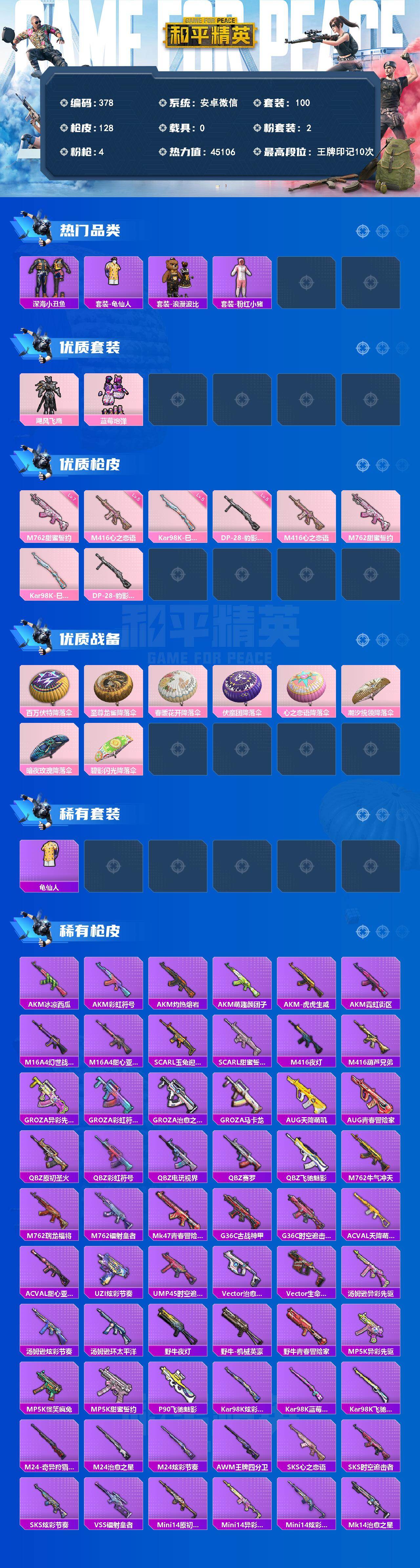 6721 可二 游戏66级 2粉4枪 99套装127枪皮 10印记 【2粉装