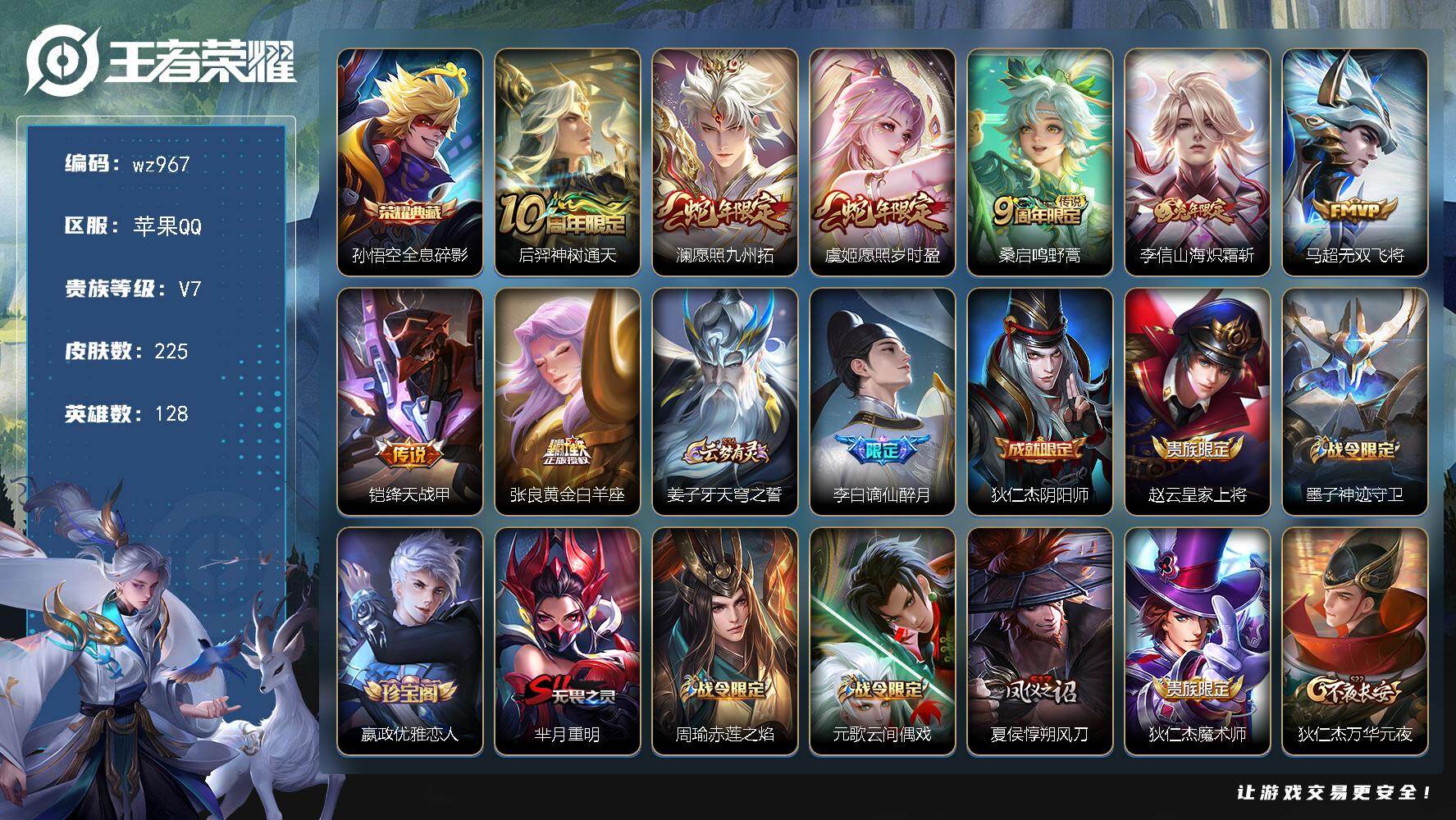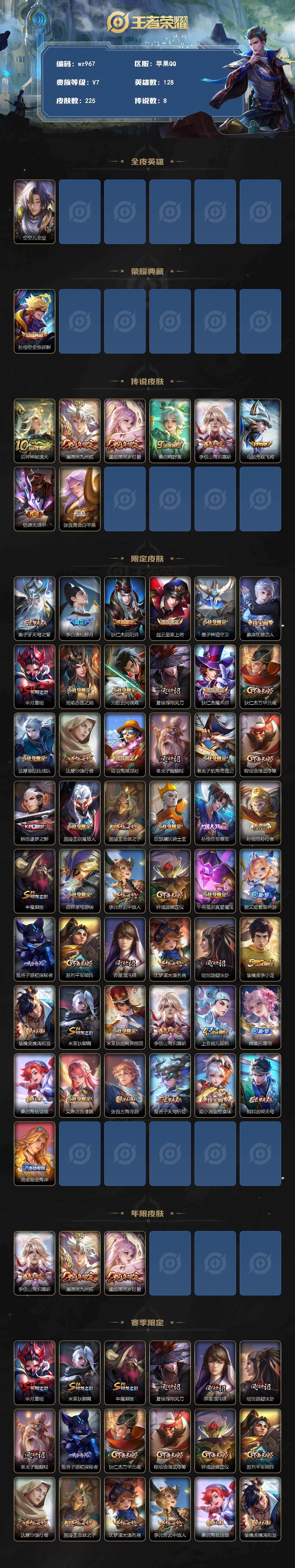 苹果Q-V7-永恒钻石II段位-128英雄-225皮肤-1典