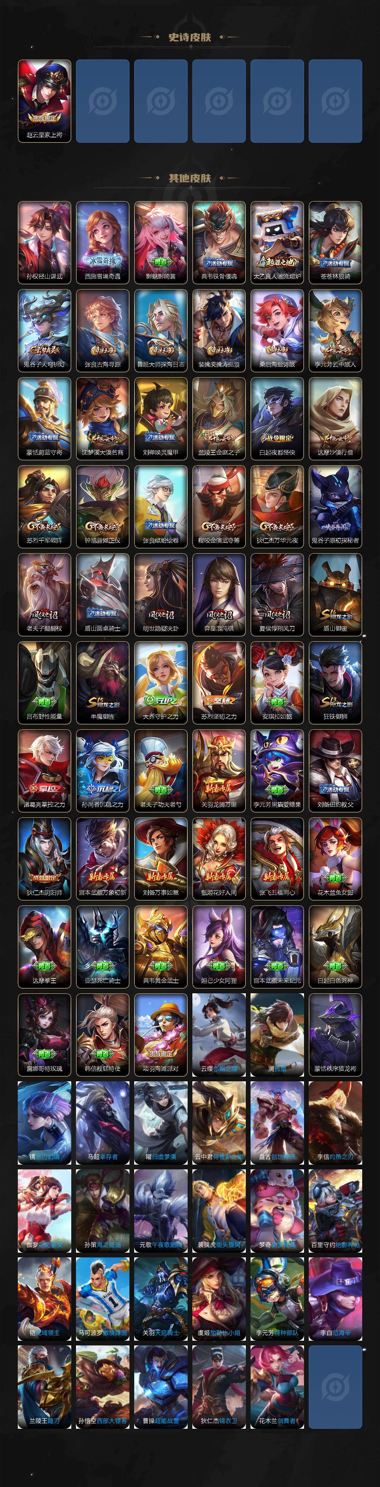 【限定皮肤】:狄仁杰阴阳师,赵云皇家上将,白起夜都怪侠,夏侯惇朔风刀,狄仁杰万华元夜,达摩沙漠行僧,项羽海滩派对,老夫子醍醐杖,程咬金演武夺筹,兰陵王金庭之子,牛魔