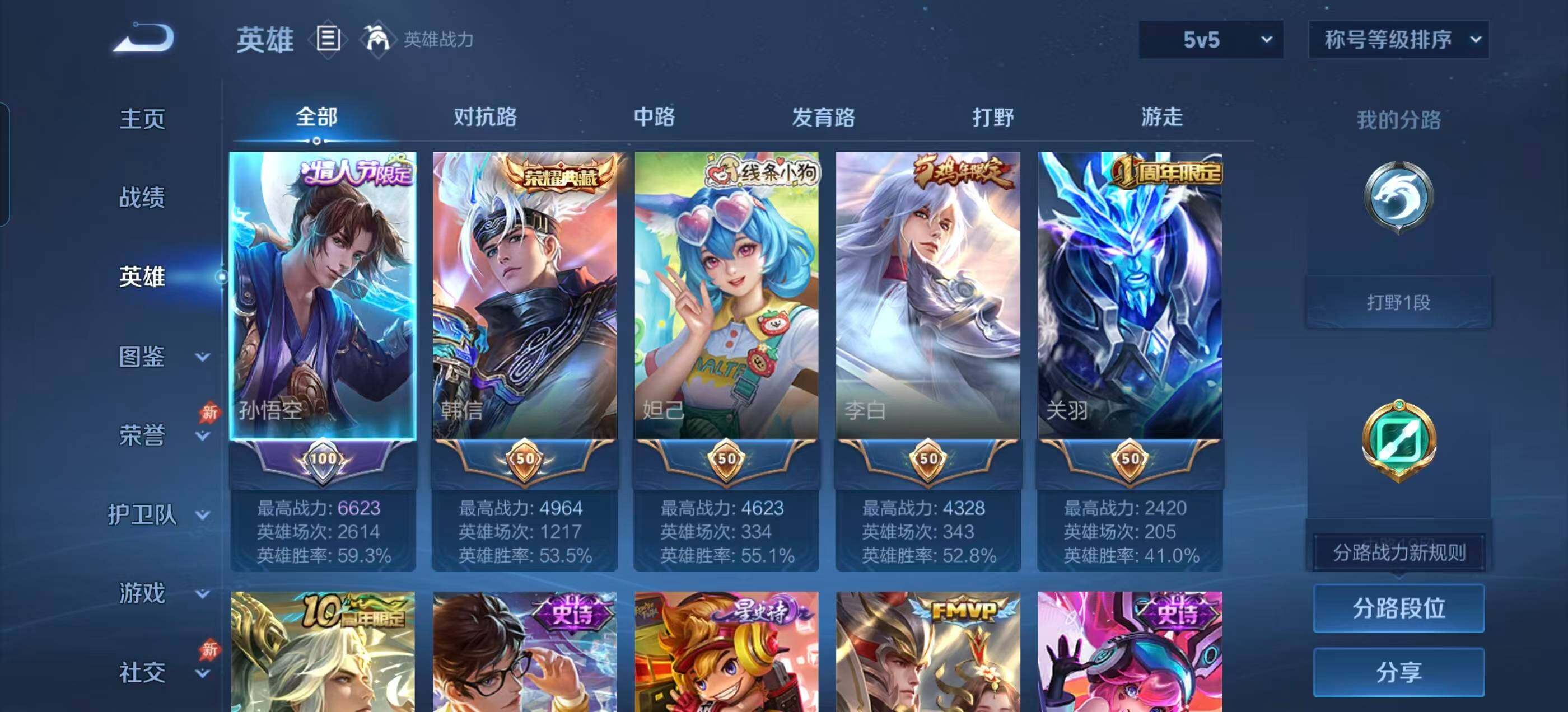 安卓Q-V7-永恒钻石III段位-128英雄-314皮肤-1典藏皮肤-15传说-80史诗