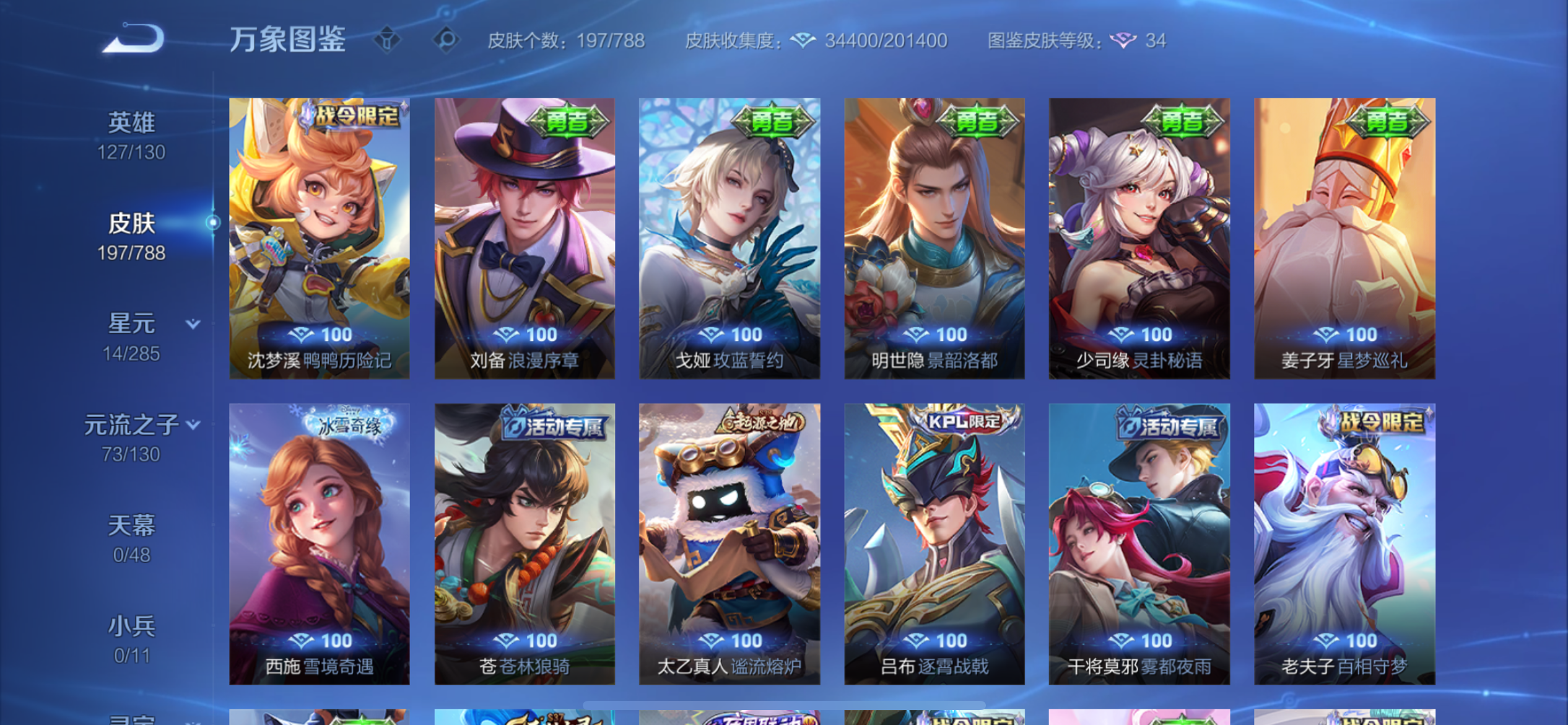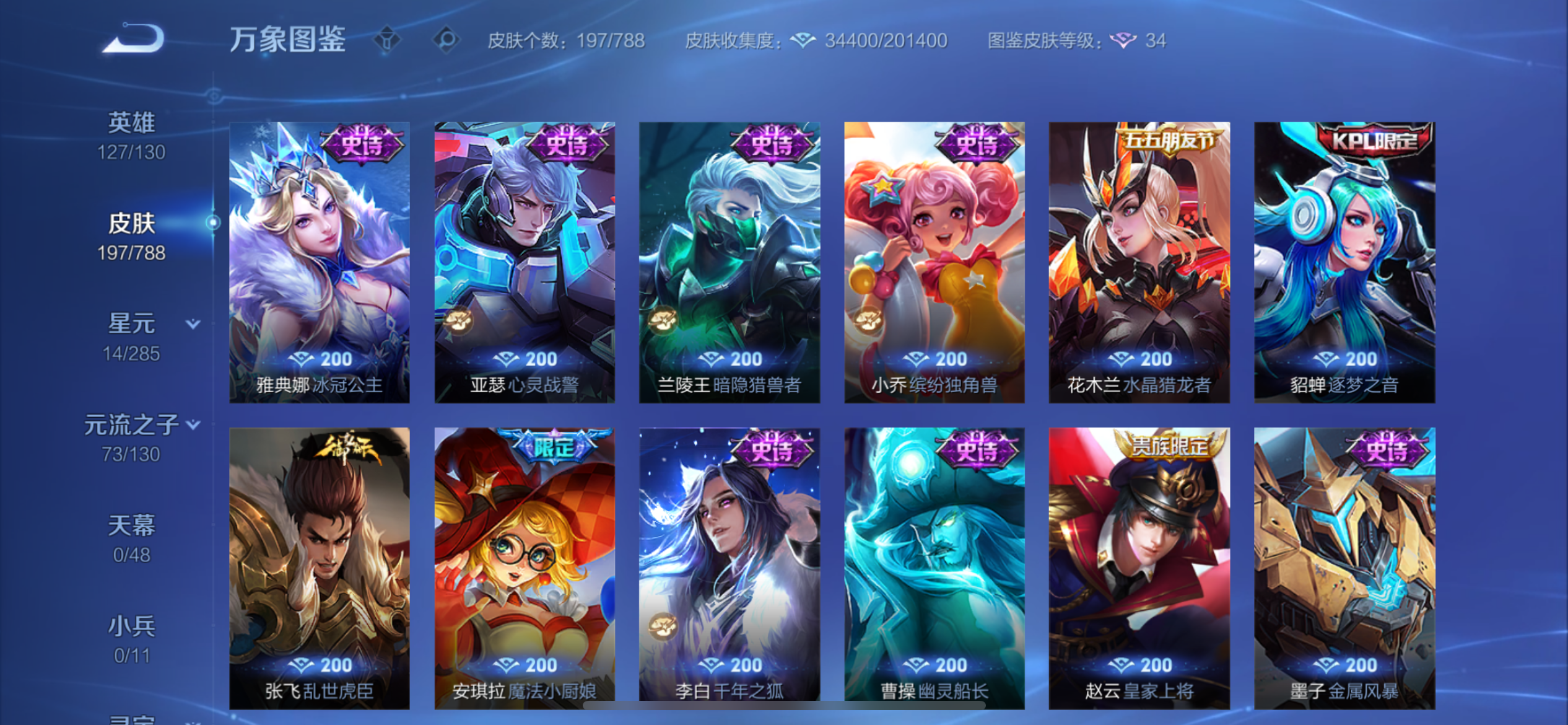 V8 皮肤197 英雄127 至尊星耀 荣耀典藏1 珍品传说2 星传说2 传说21
