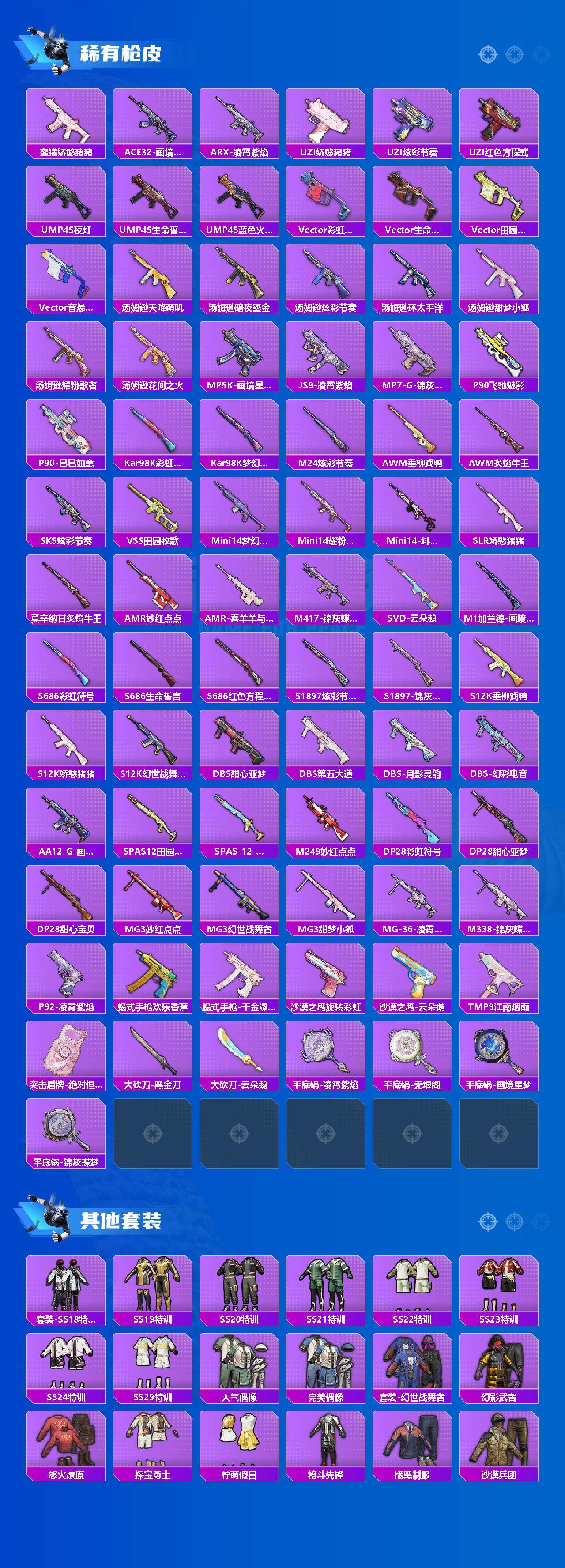 【粉色枪皮等级】:M16A4-垂柳戏鸭(五级),Kar98K-巳巳如意(五级),M