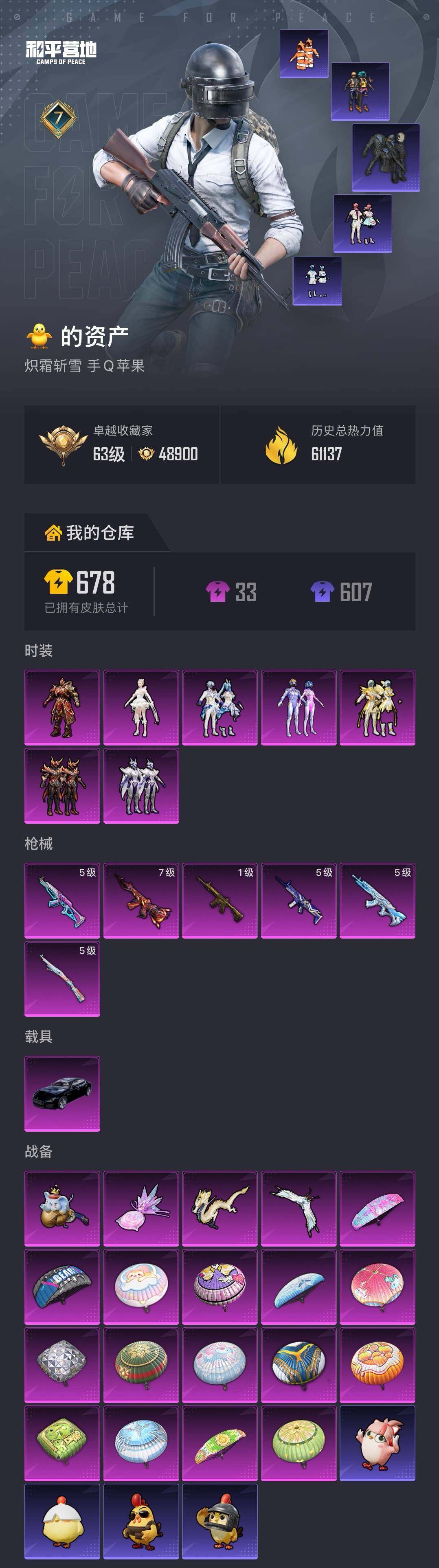 【AZH3722】苹果 手Q【都市梦幻火箭千金淑猫 满级风花雪月M416 1载具】7粉装-6特效枪-1载具-4粉色飞行器-61137热力值-7王牌印记-129套装-202枪皮