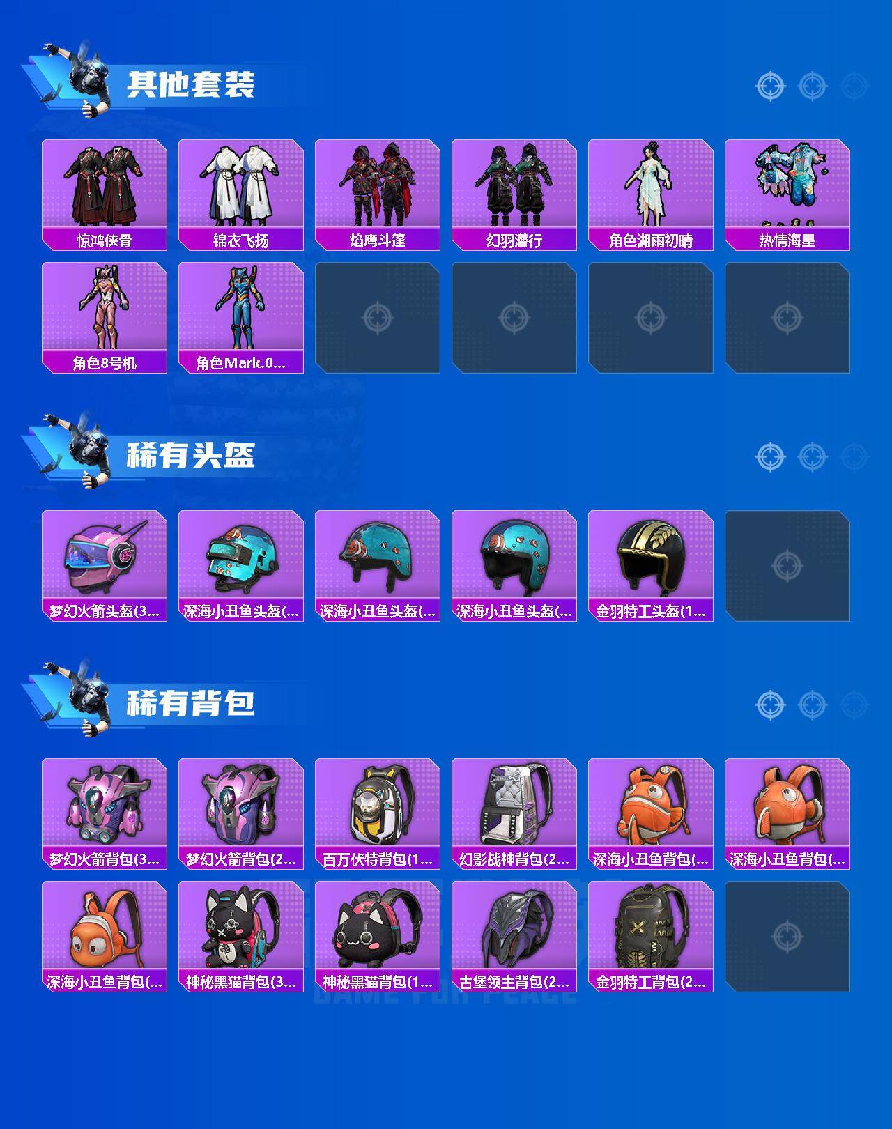 【热门品类】:粉装-梦幻火箭,套装-都市猎人,套装-深海小丑鱼,套装-小丑鱼,套装-金羽特工,角色-8号机,角色-Mark.06