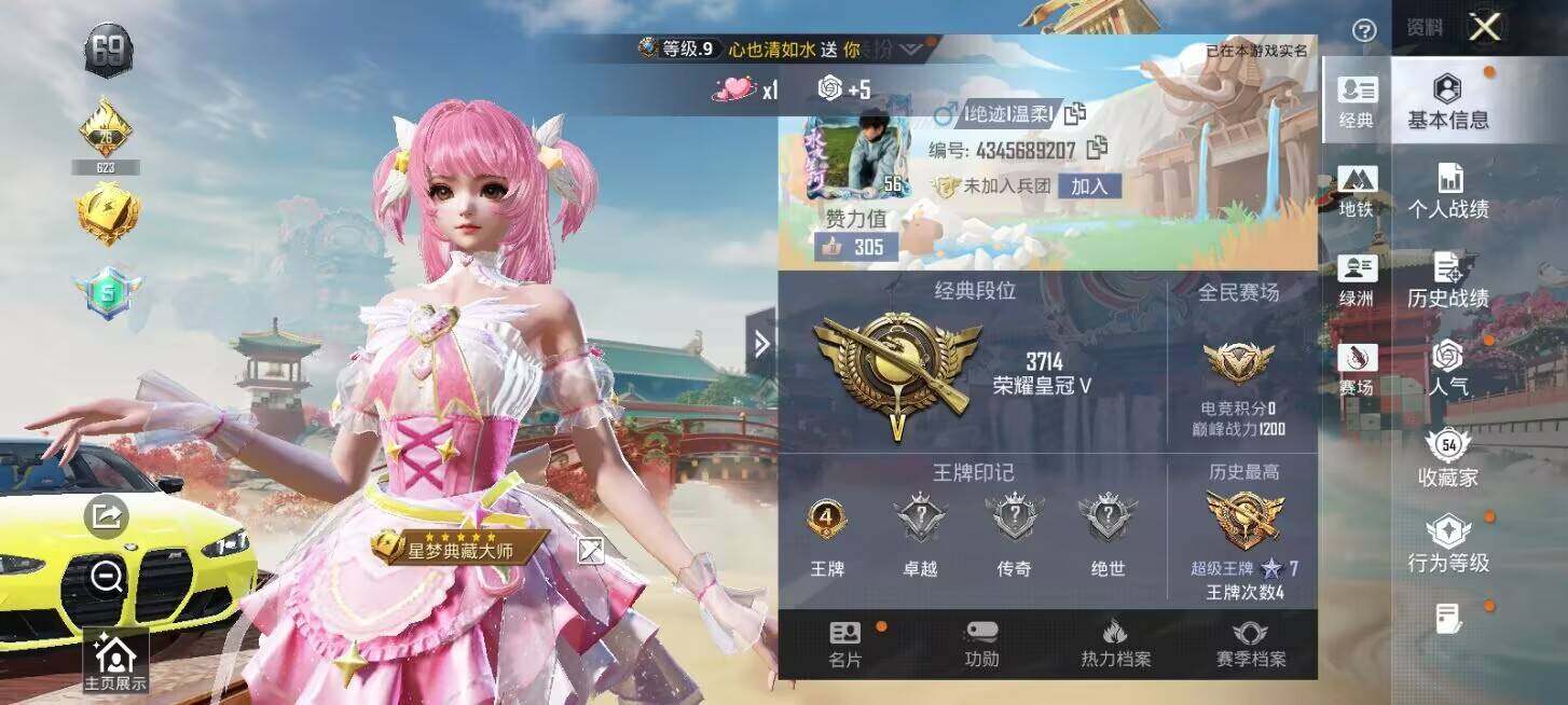 公主号-地铁满天赋-2B战斗服款/光明术士/圣堂之誓/樱桃泡泡/宁雨蝶/绯穹魔姬/奇迹舞步贝贝/奇迹舞步美雪/98K巳巳如意五级/DP28千金淑猫六级/PKM江南烟雨七级/宝马M4(黄)(7粉装-3粉枪-1载具)没战神框 HP7763-2粉色飞行器-49637热力值-4王牌印记-105套装-155枪皮