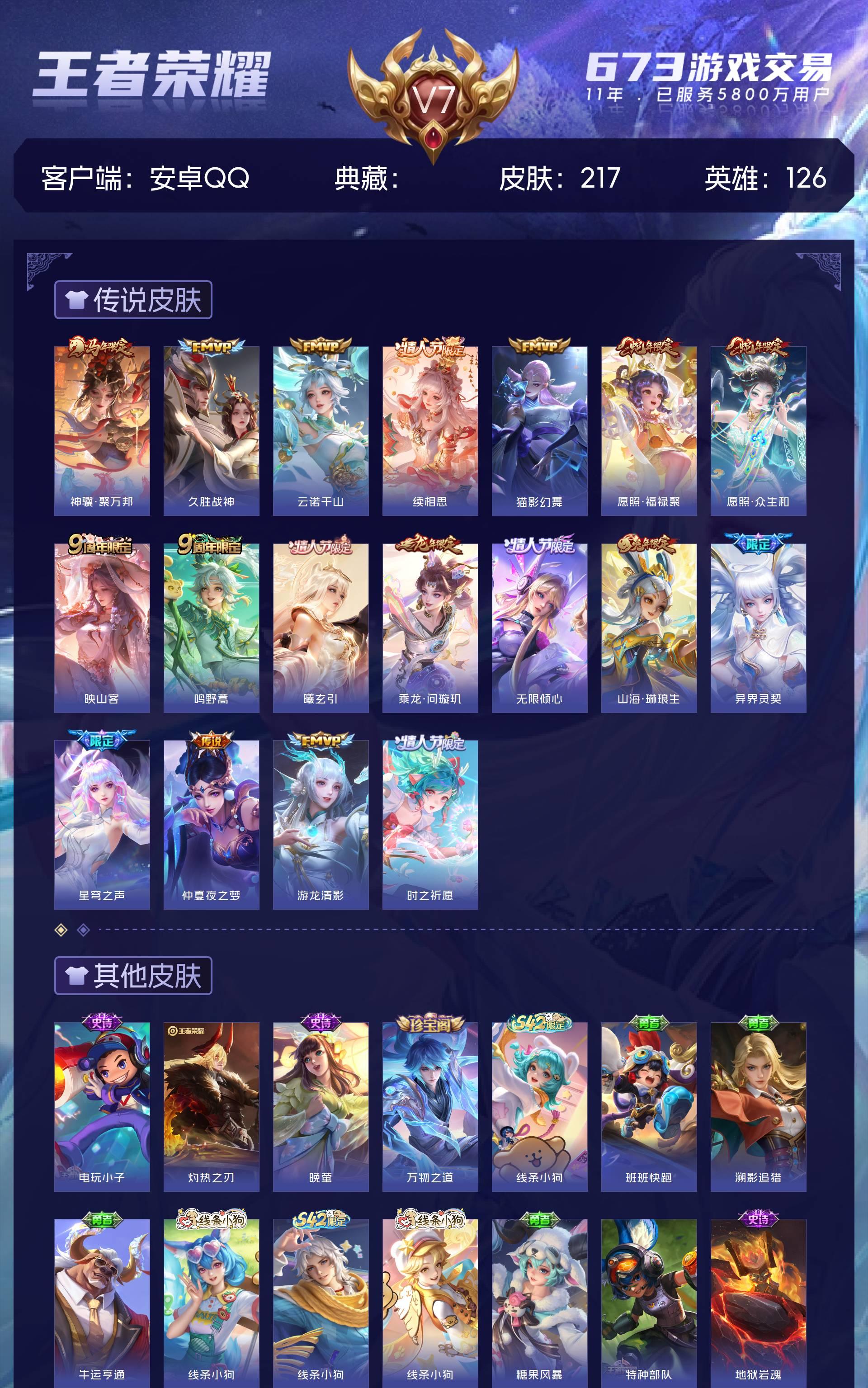 V7 皮肤217 英雄126 尊贵铂金 星传说1 传说18