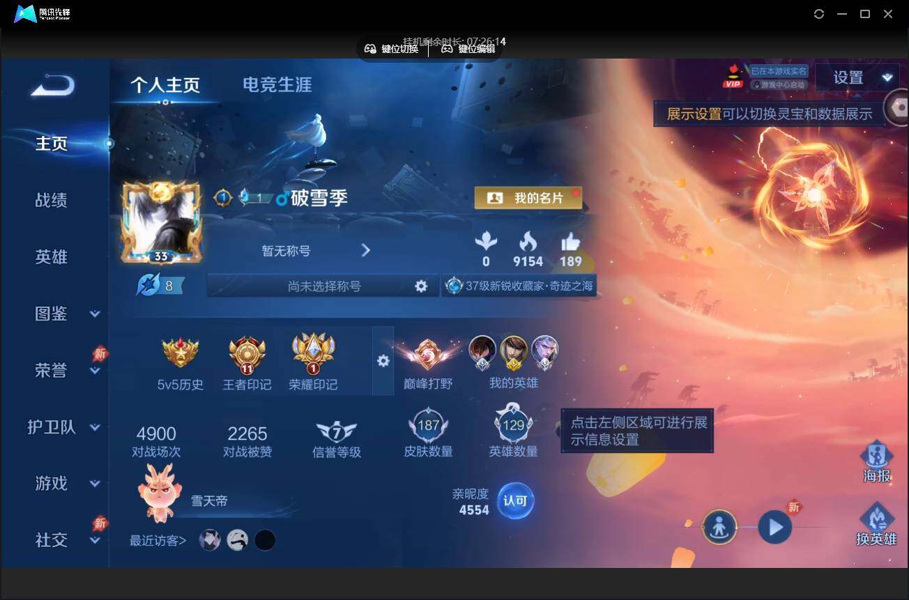 W7033】【4.9k场次-打野33段-赵云省标】 爆款臻稀皮肤:铠银白咏叹调-愿照·九州拓-乘龙·铭钟鼎-逐花归海】可二次-贵6-129英雄-187皮肤-1典藏-1星元-6传说-1天幕-6按键-贵族积分1.3w