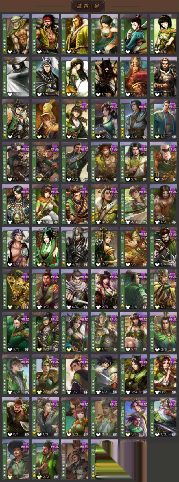 VIP10大将军,314武将,370皮肤,28动皮,38史诗宝珠,36史诗武将:四星孙寒华、四星许攸、四星谋曹丕、四星骆统、兀突骨、公孙康、关索、南华老仙、吴景、周处、士燮、左慈、张星彩、戏志才、星周不疑、星黄忠、曹纯、杜预、杨修、沙摩柯、王元姬、界徐盛、界李儒、界钟会、留赞、神华佗、神吕蒙、神周瑜、神张辽、神赵云、神陆逊、祢衡、程昱、花鬘、董允、谋马超、赵襄、麹义 谋甄姬、谋张飞、谋小乔、张