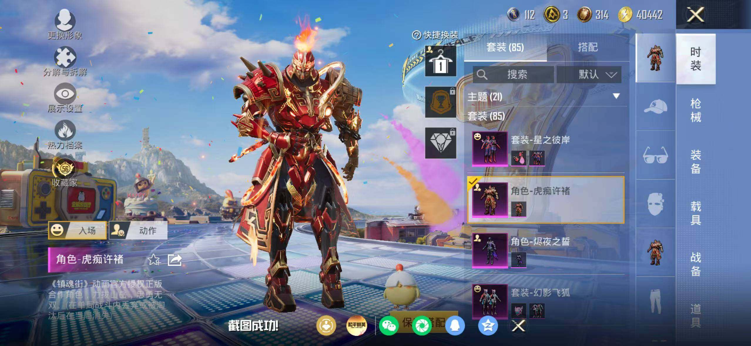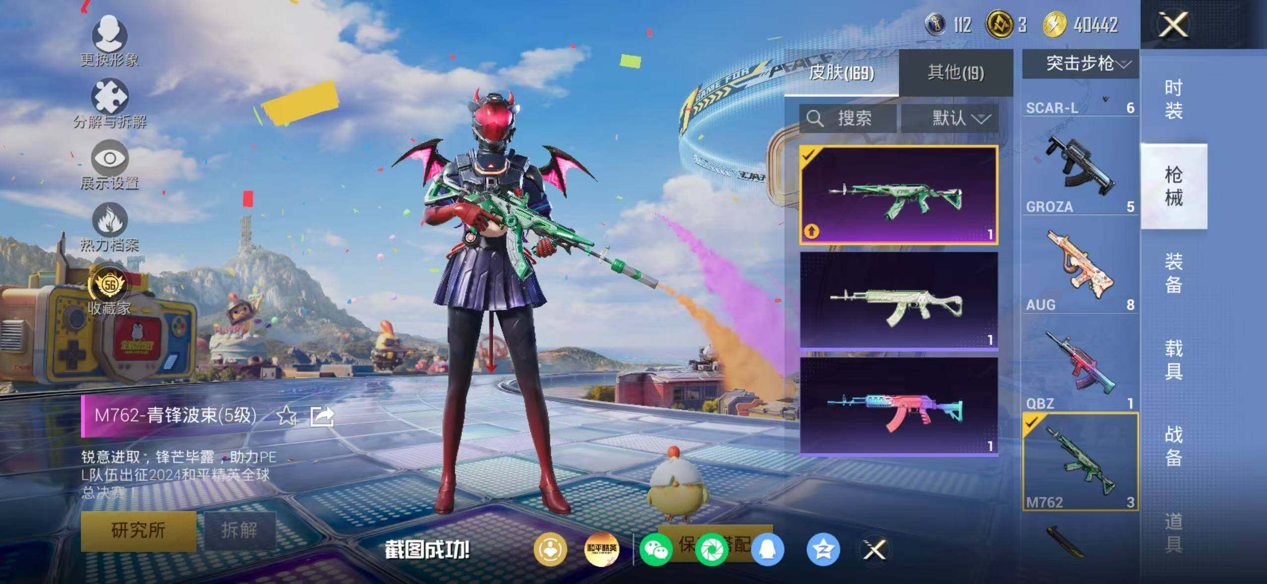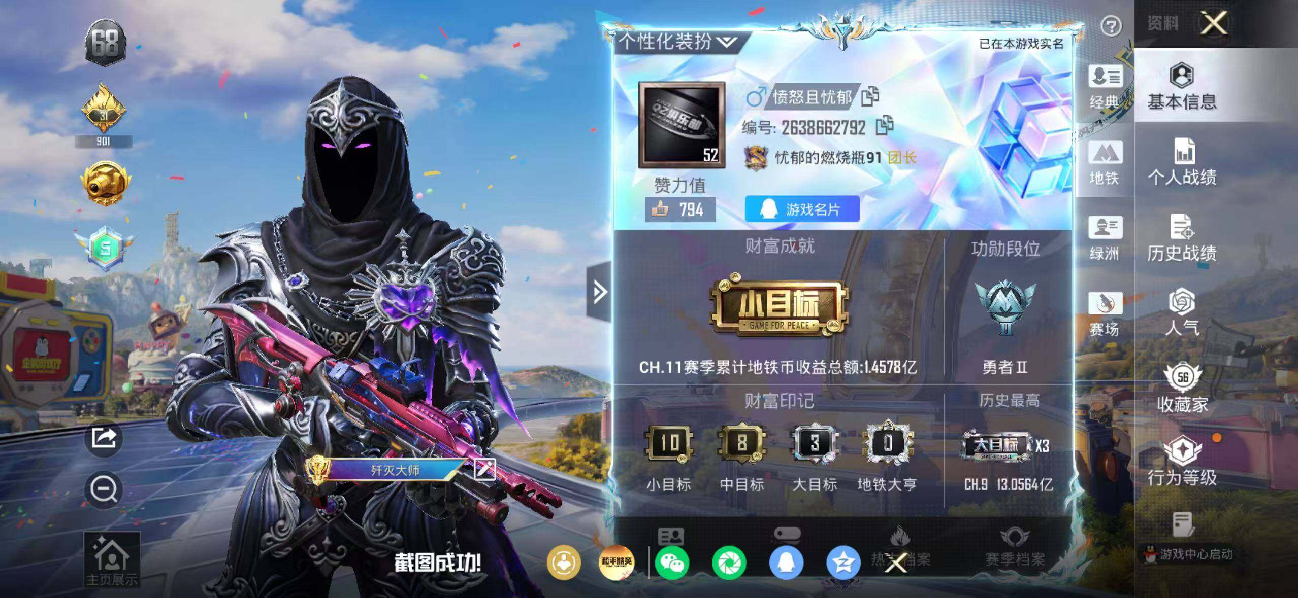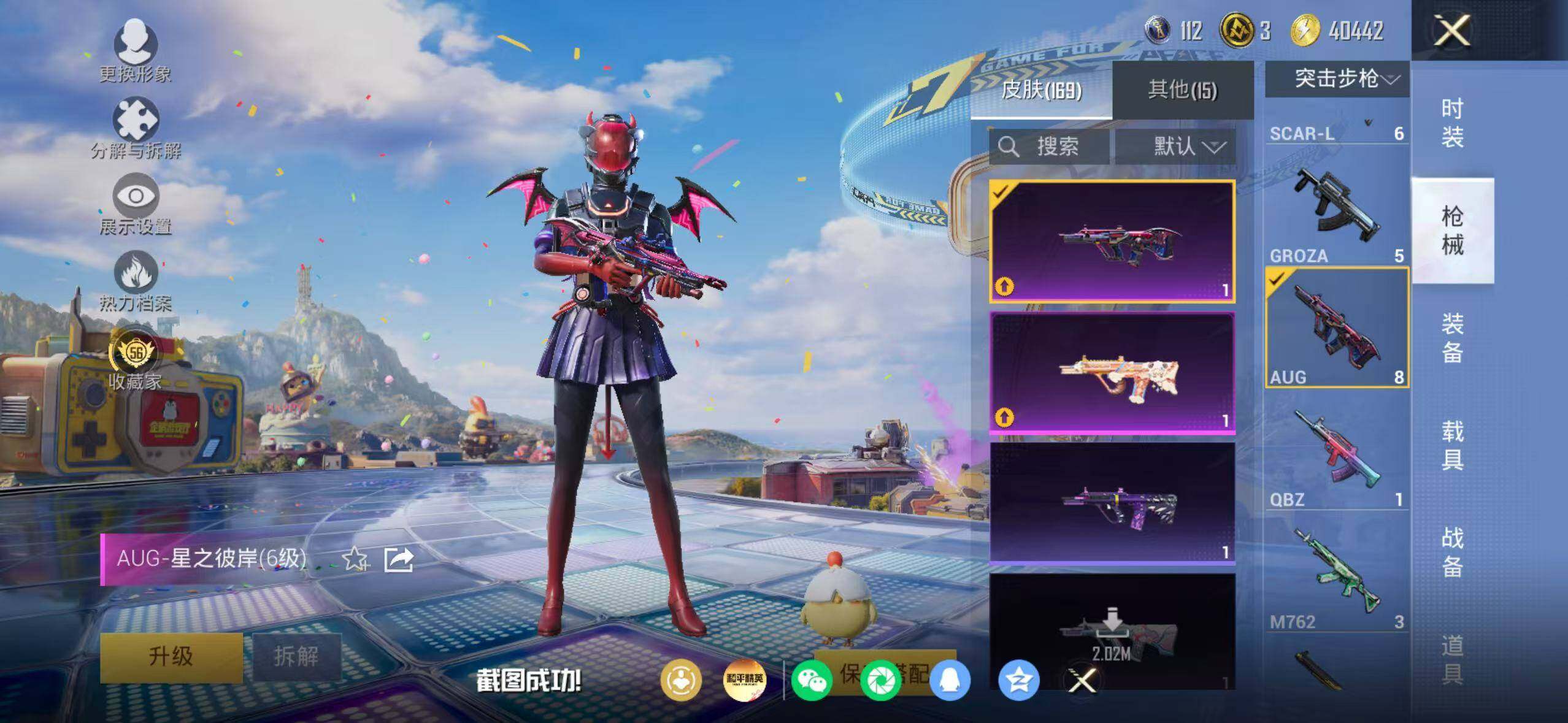 85套装/枪械10/装备202/战备92/王牌印记5/热力值45039/六级AUG-星之彼岸/五级AUG-暖羊咩咩/五级M762-青锋波束/四级Vector-环太平洋/五级AKS-74U-森灵之息/五级Kar98K-巳巳如意/三级Kar98K-圣域龙灵/五级Mk14-福马献瑞/四级AA12-G-萌骑幻想/五级DP-28-豹影疾电/深海小丑鱼/忍者信条/套装-龟仙人/套装-粉红小猪/角色-Mark