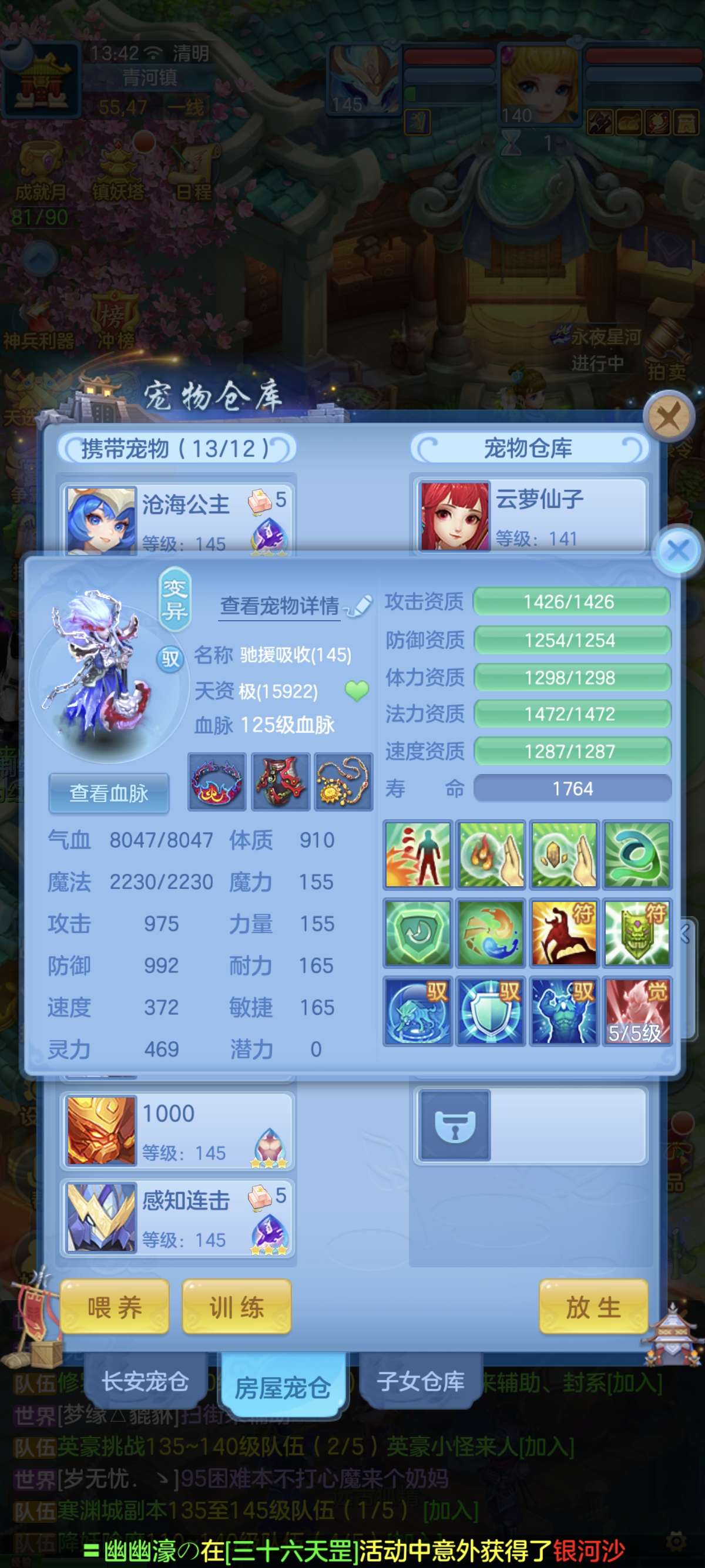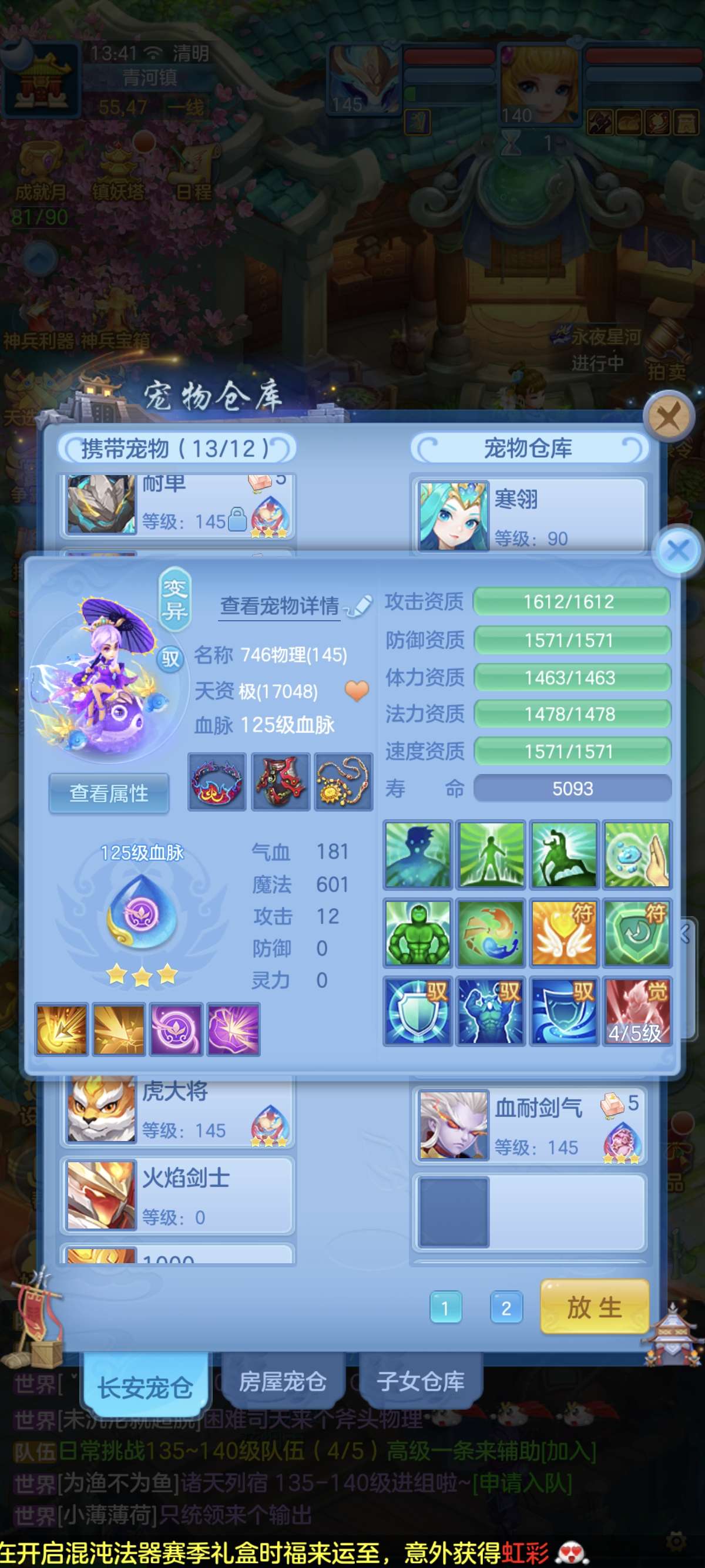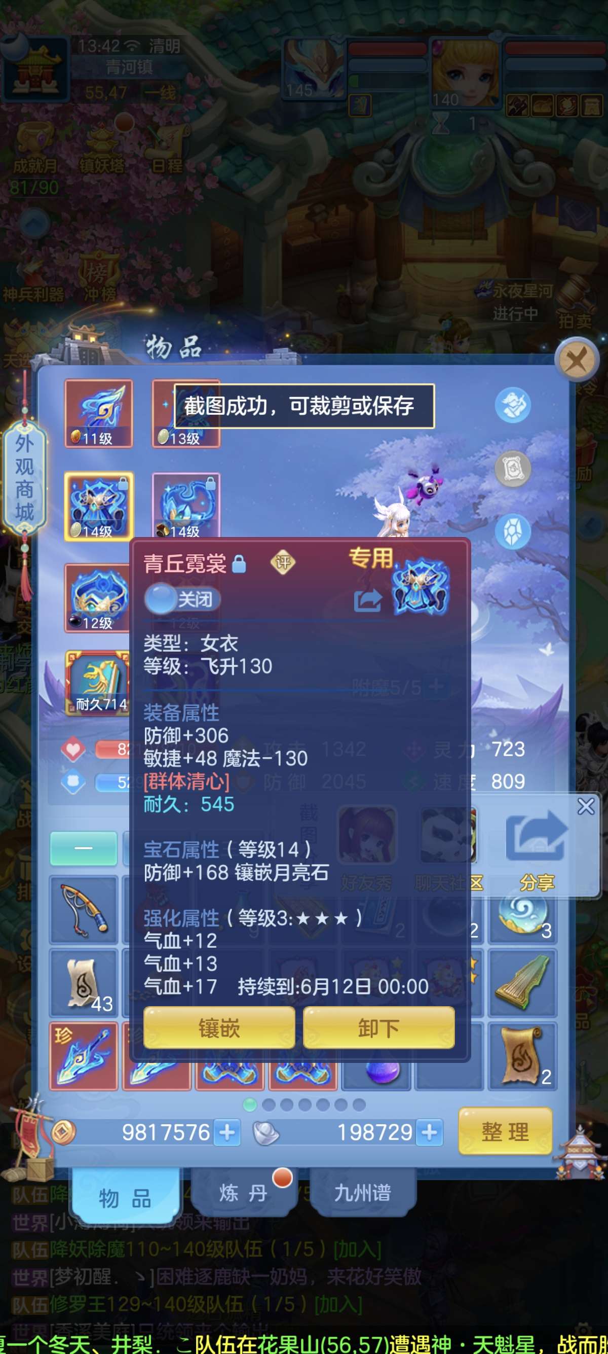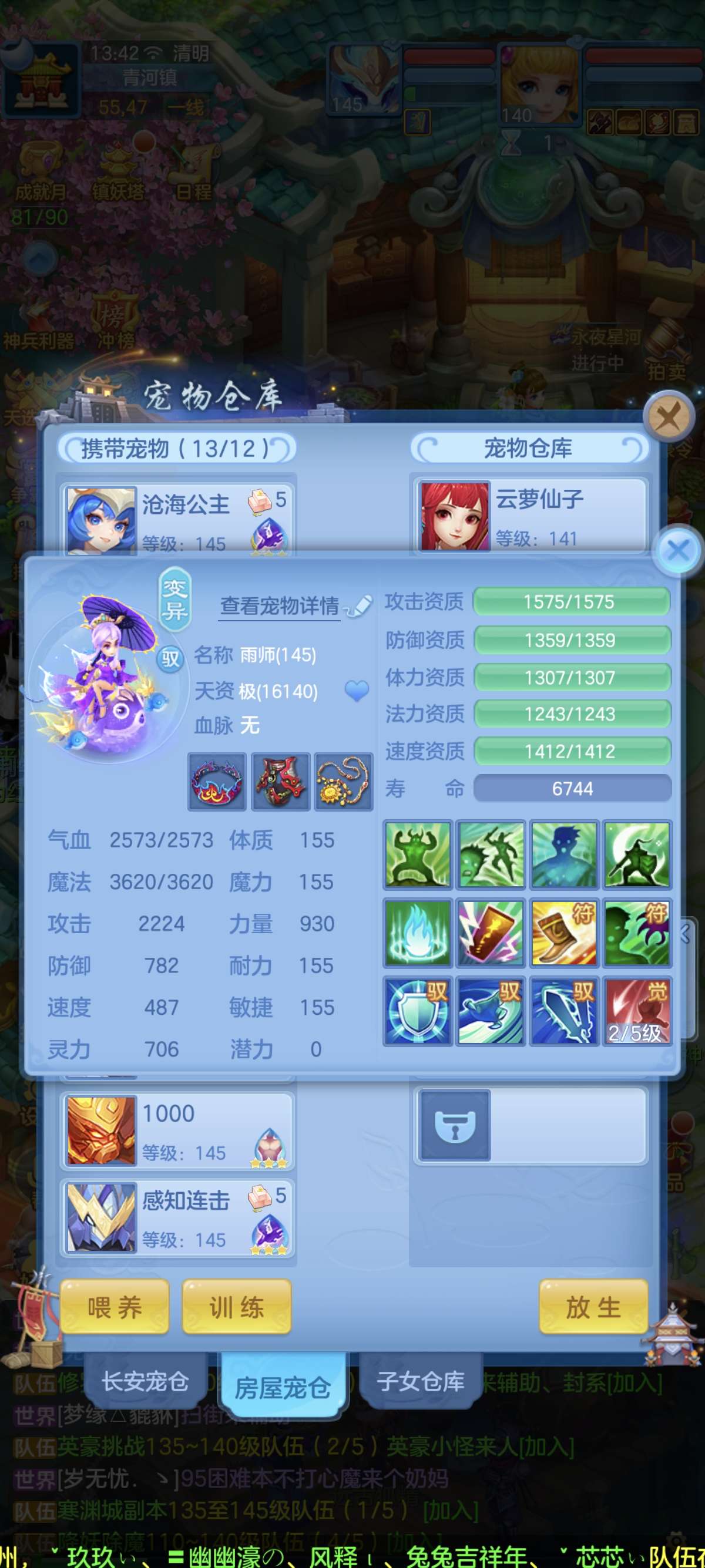 140普陀13-14段,双武器,全满高坐骑。双红成品装备。20多个成品满技能