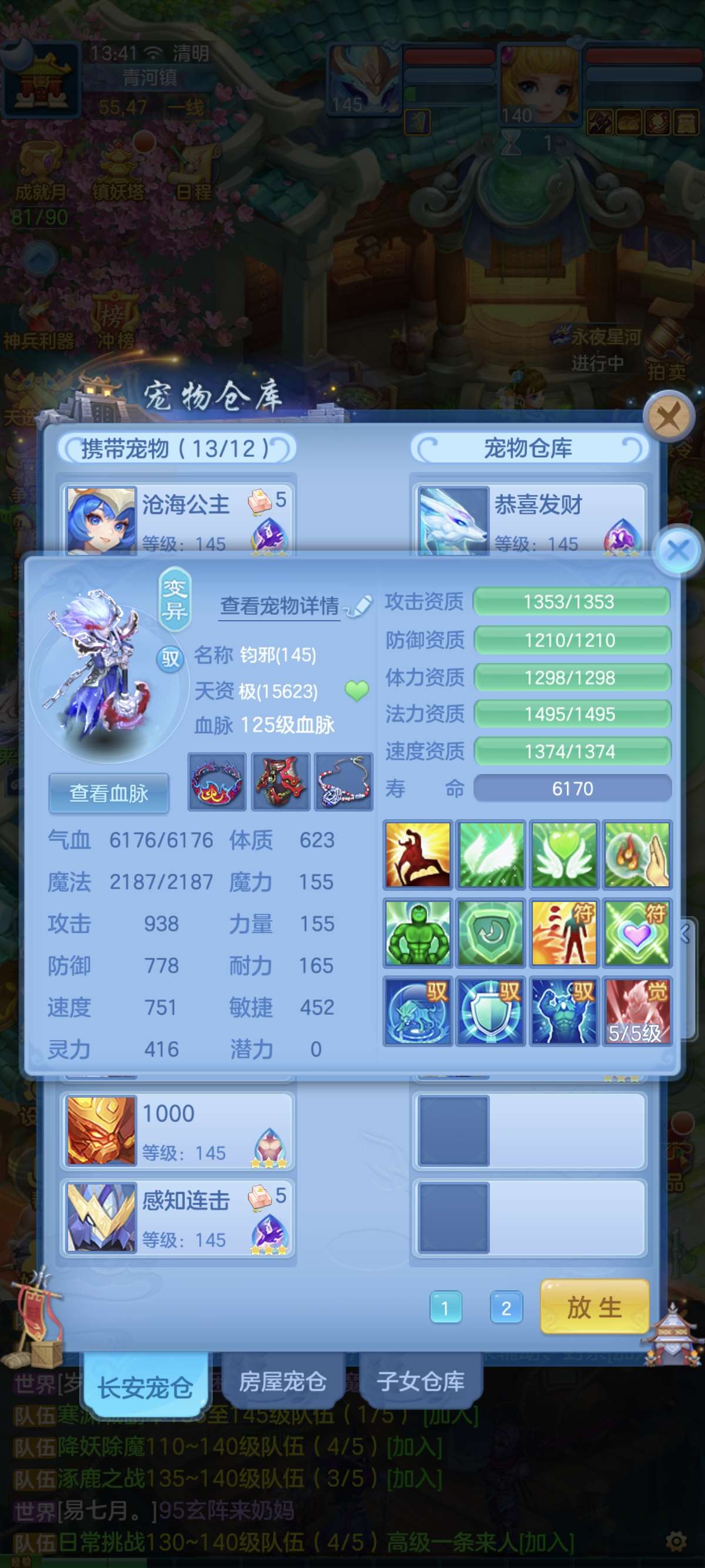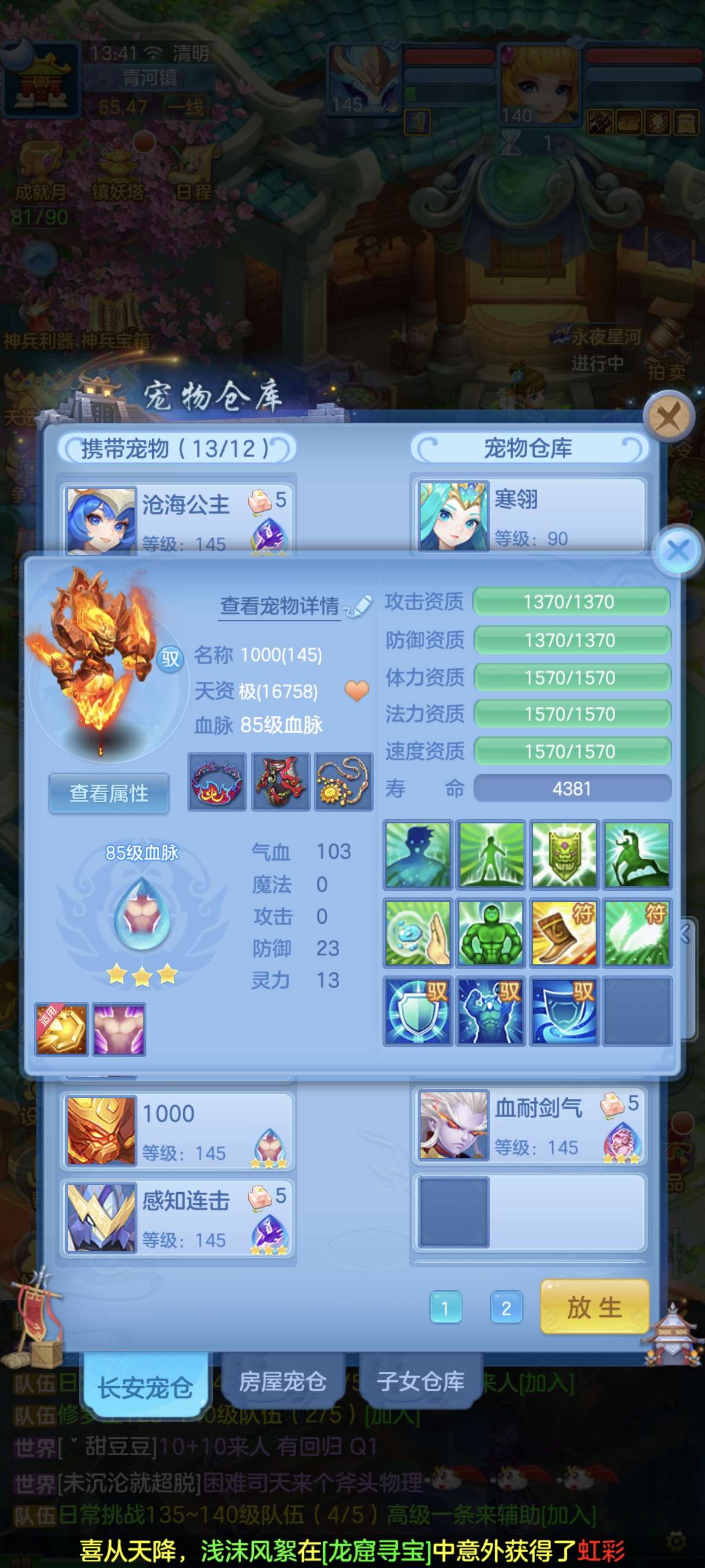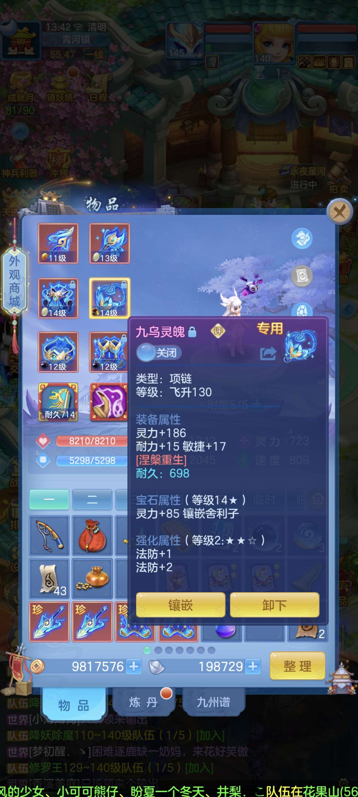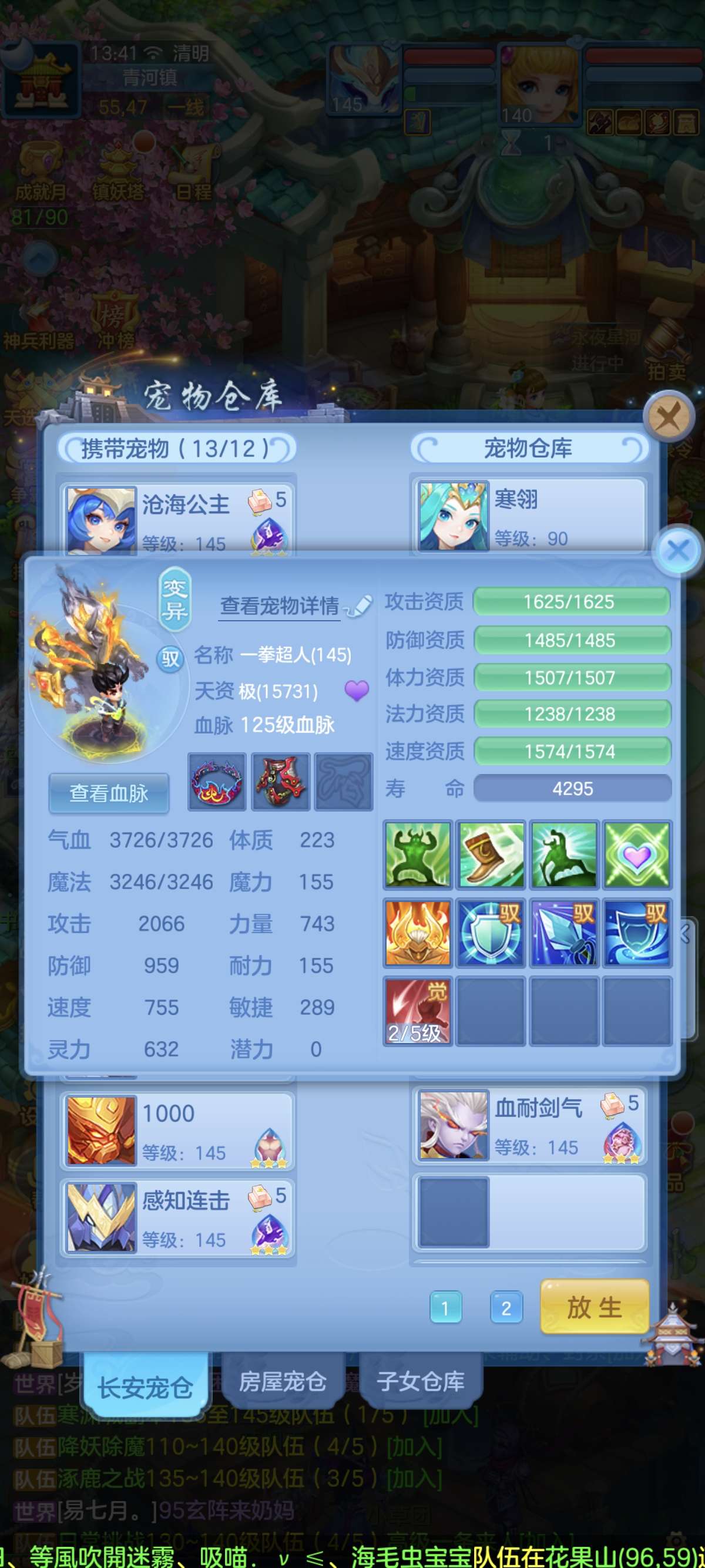 140普陀13-14段,双武器,全满高坐骑。双红成品装备。20多个成品满技能