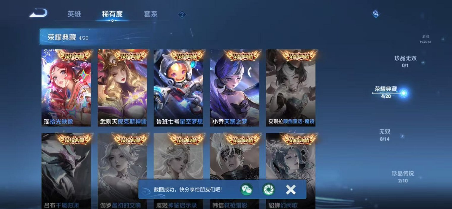 可二次【V10 493皮肤5水晶8无双6星元2珍品50传说