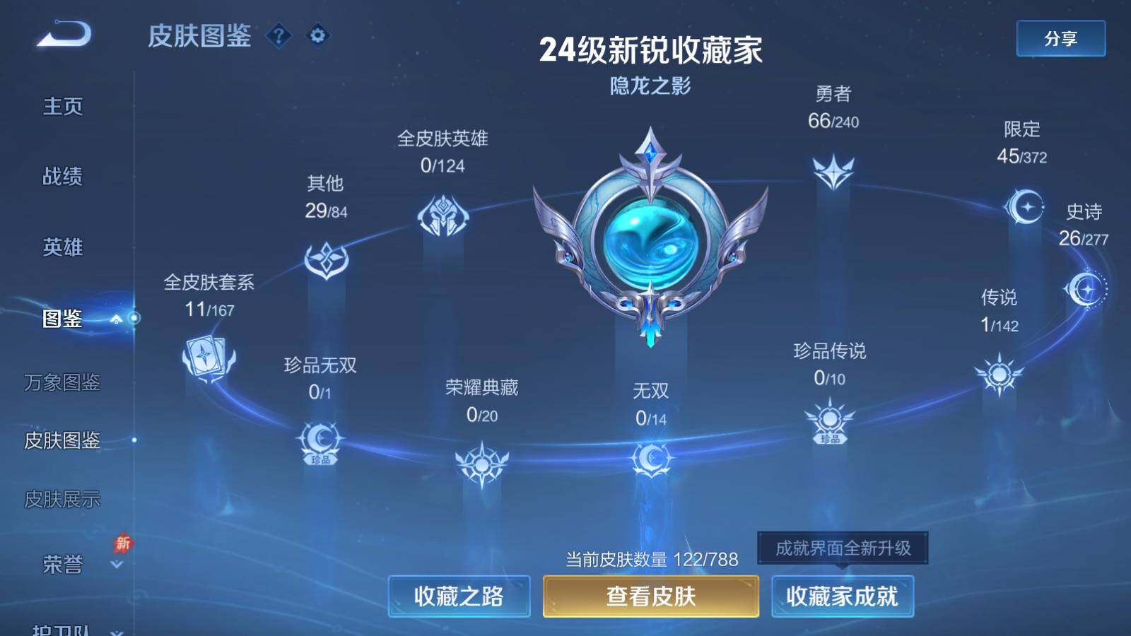 【16777182】贵族等级0/传说皮肤数量1/史诗皮肤数量26/皮肤数量12
