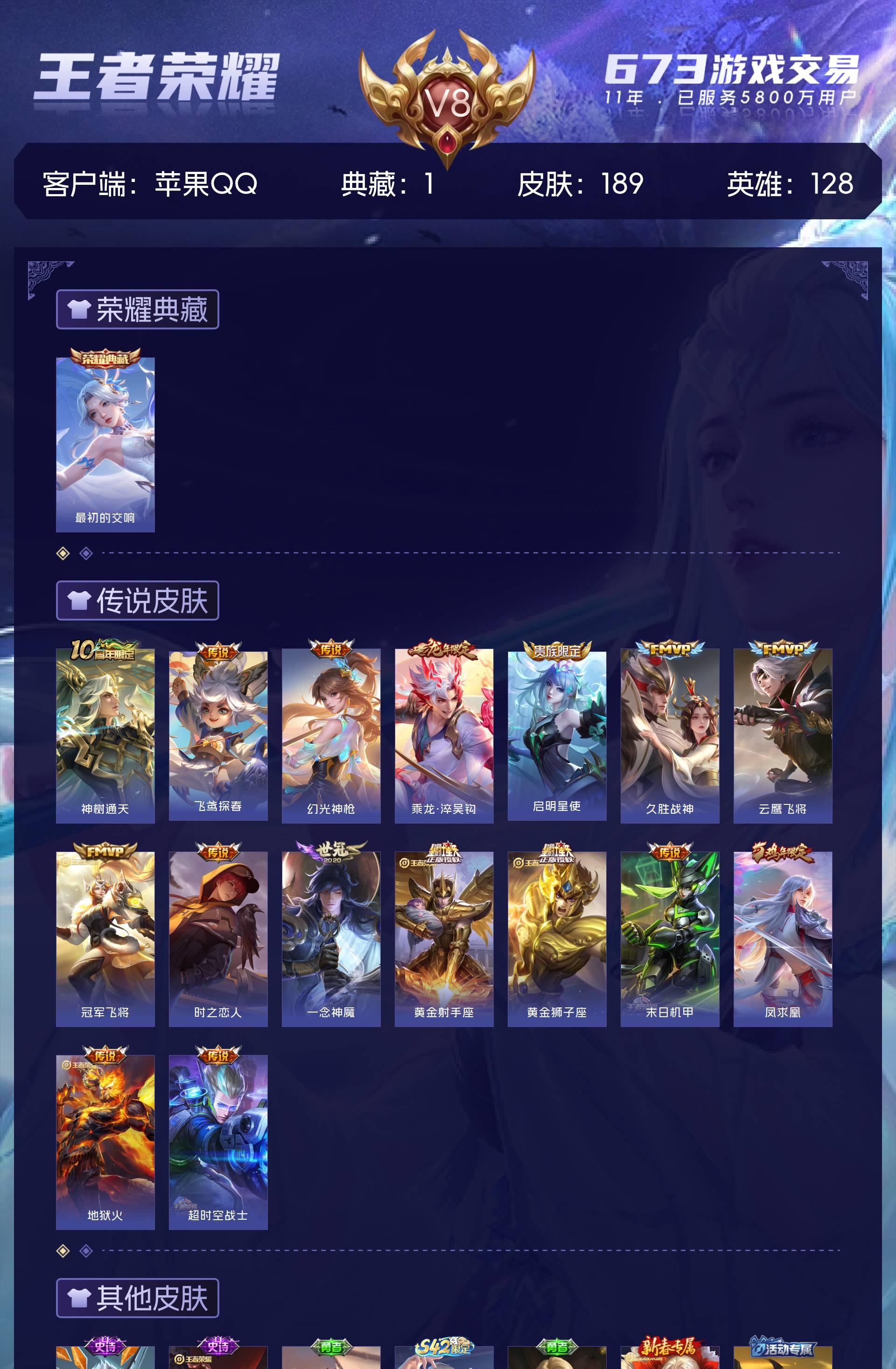 V8 皮肤189 英雄128 永恒钻石 荣耀典藏1 星传说2 传说16