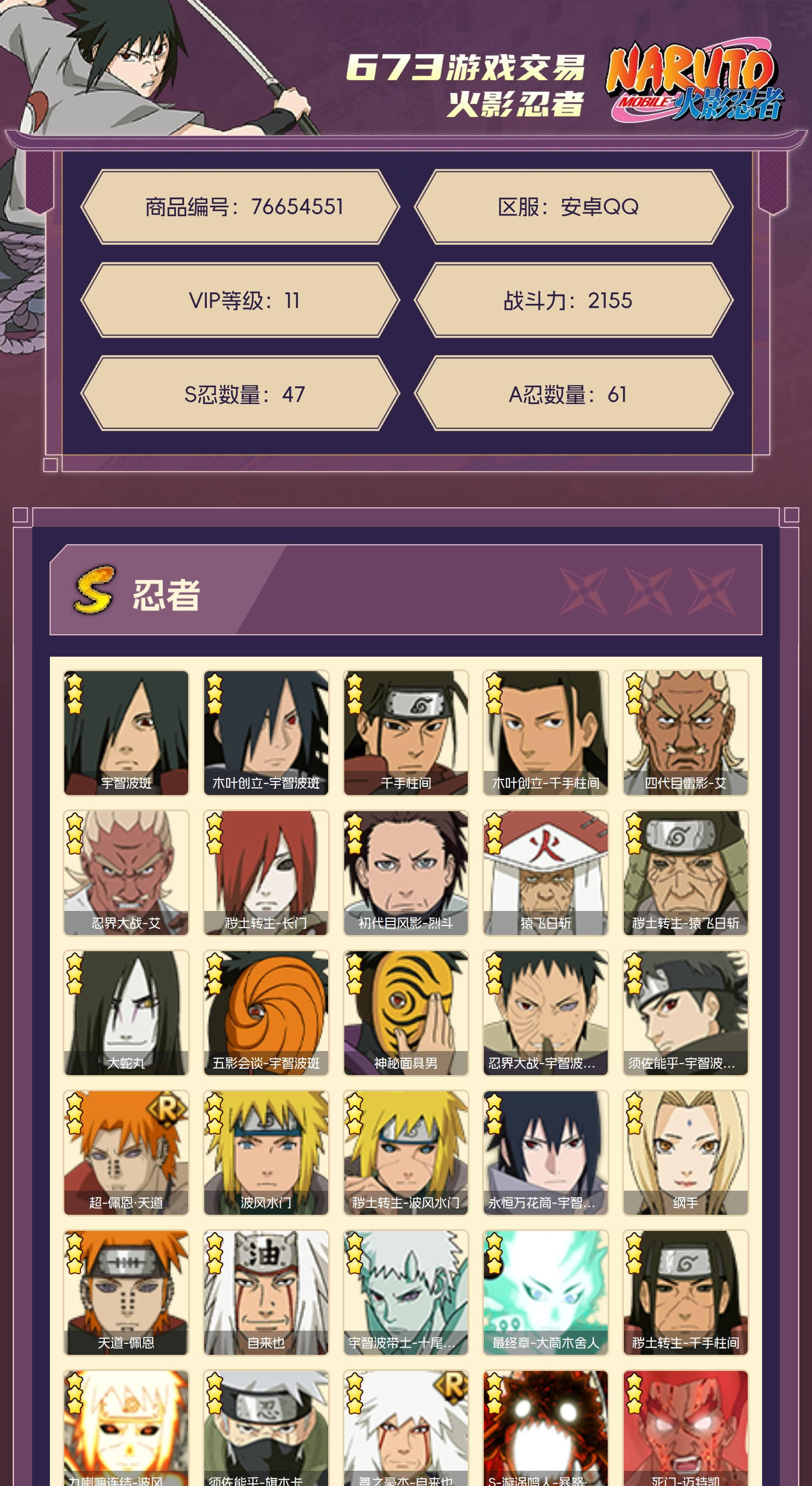 角色等级161 金币5529 战斗力2155 S忍47 A忍61 5星S忍者2 11 段位中忍