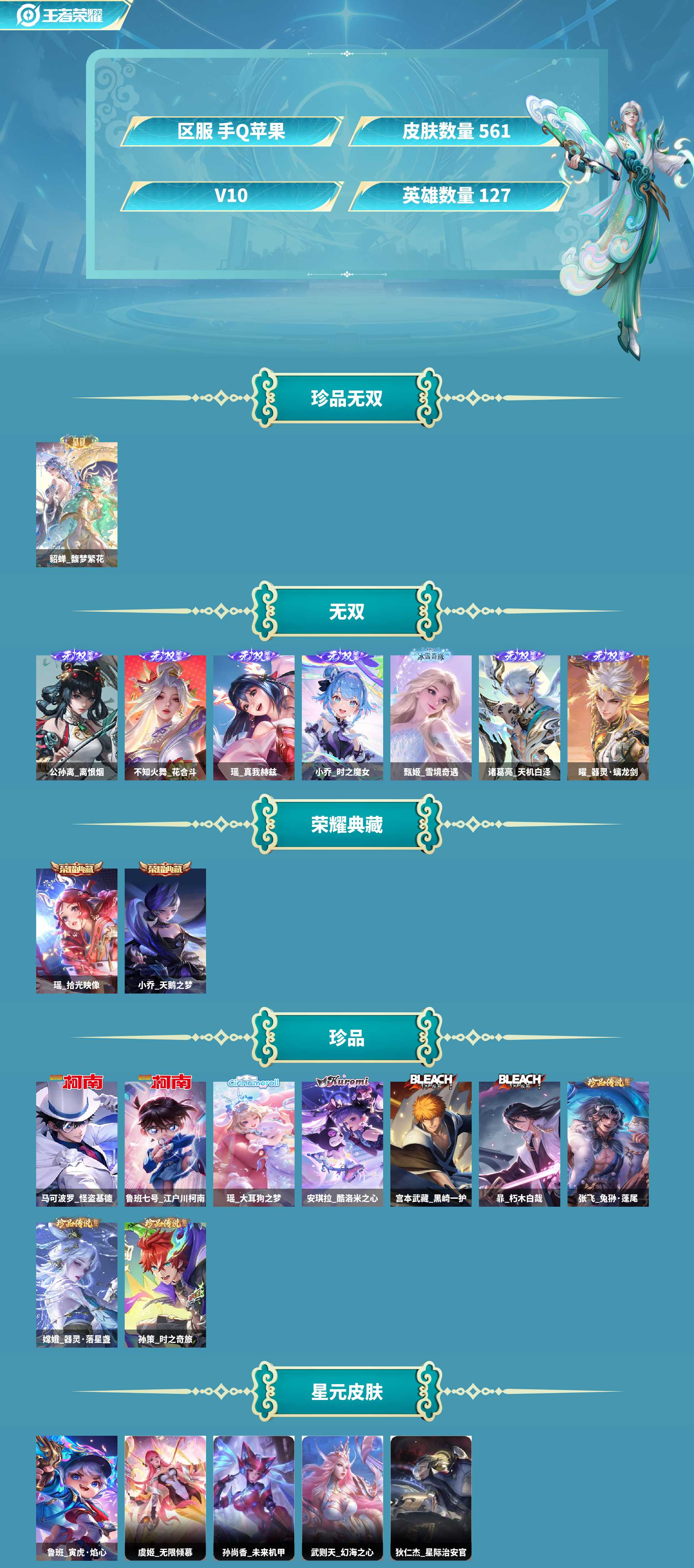 精品女v10!财花双天幕!繁花貂蝉!5女7无双!瑶+小乔典藏!9珍品!