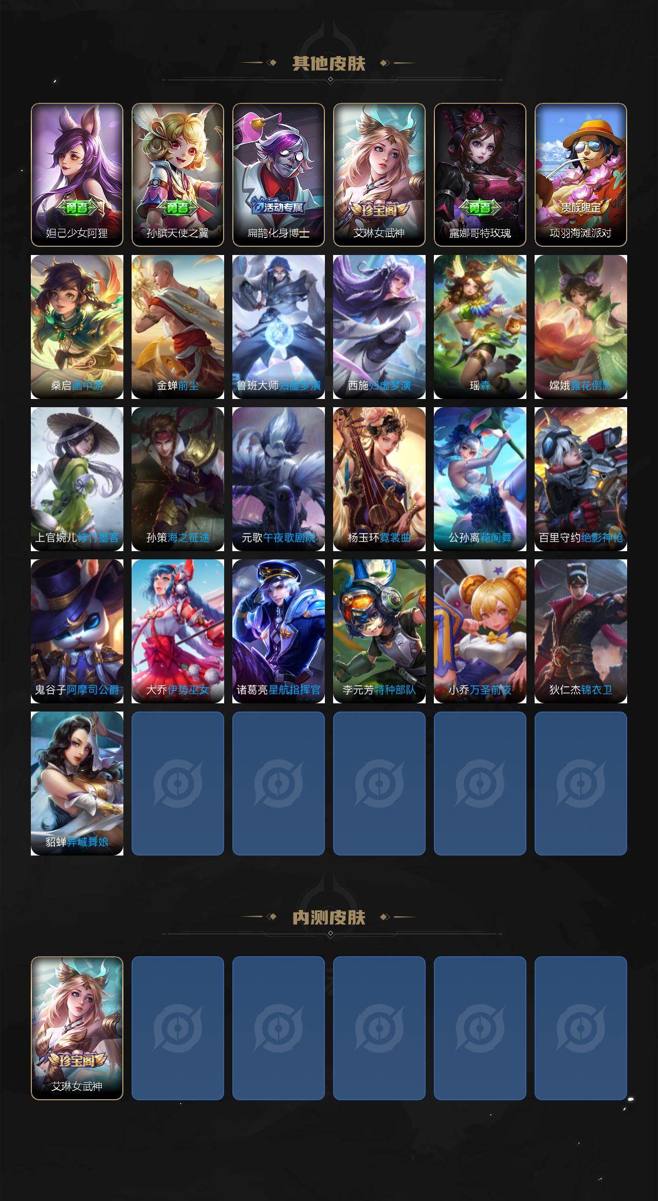 【16777190】贵族等级4/传说皮肤数量1/史诗皮肤数量13/皮肤数量69