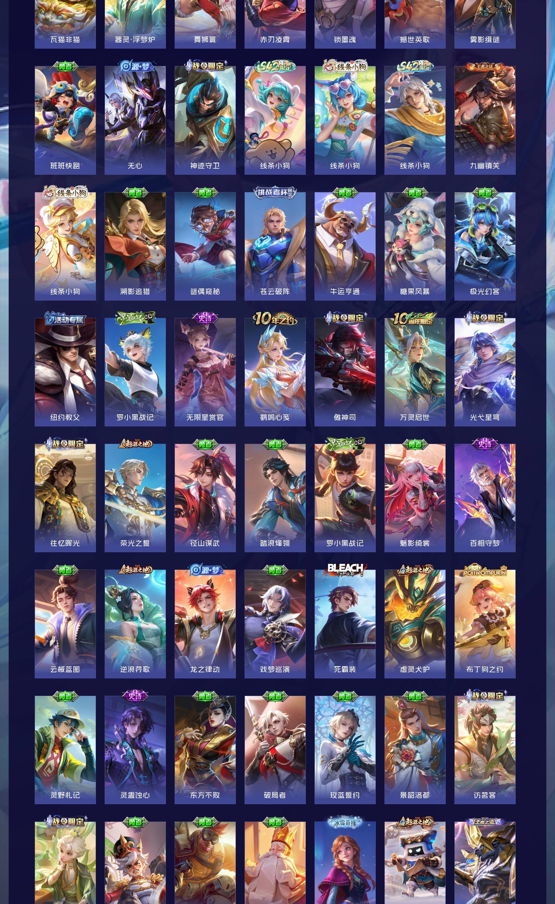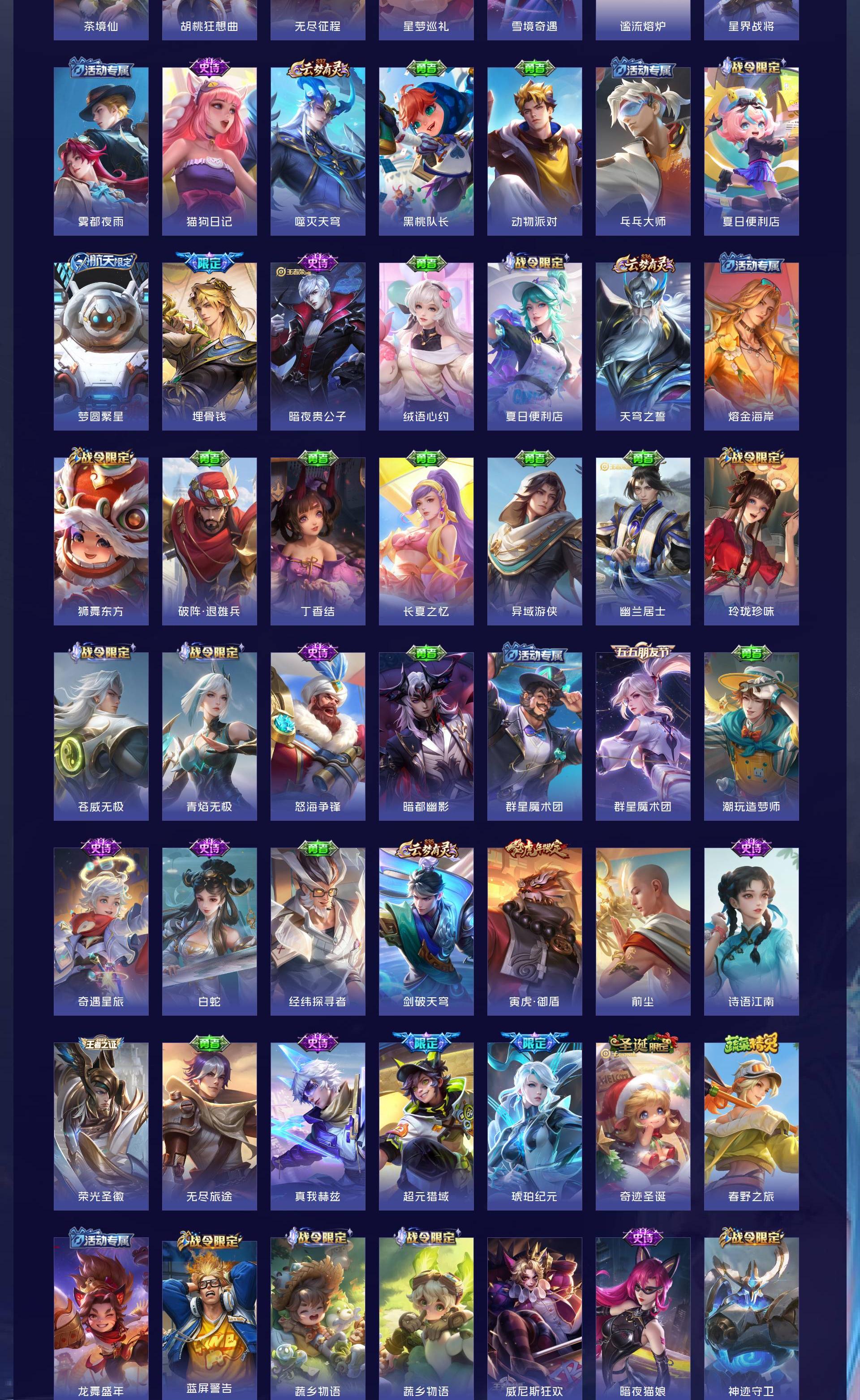 V10 皮肤564 英雄129 至尊星耀 荣耀典藏15 无双皮肤7 星传说7 传说98