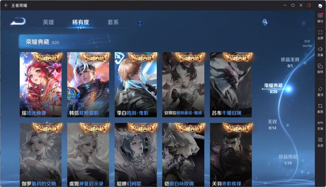 V8 皮肤326 英雄128 尊贵铂金 荣耀典藏3 珍品传说1 传说13
