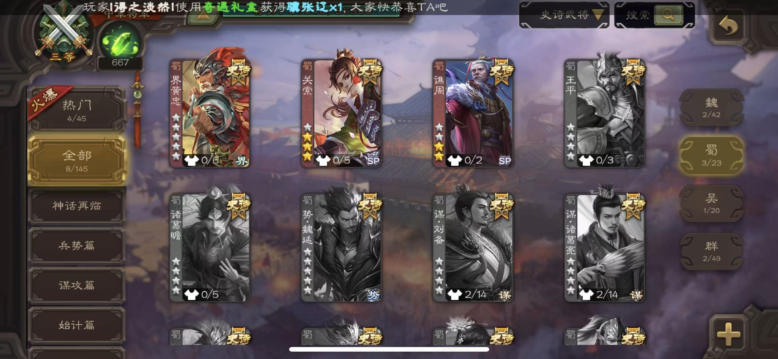 史诗武将数量: