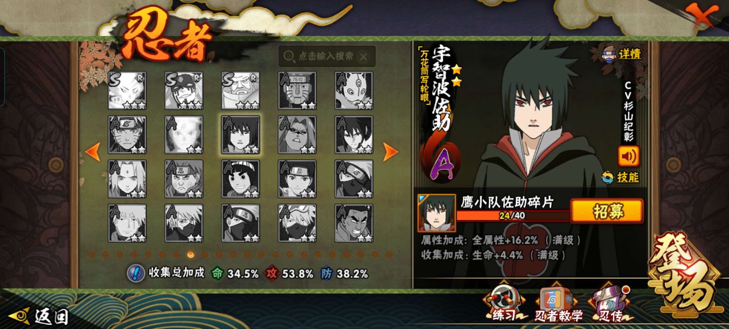 点卷a很多,高招s、a很多,忍法帖已买,创立柱间快出了,很多忍者碎片都快满了