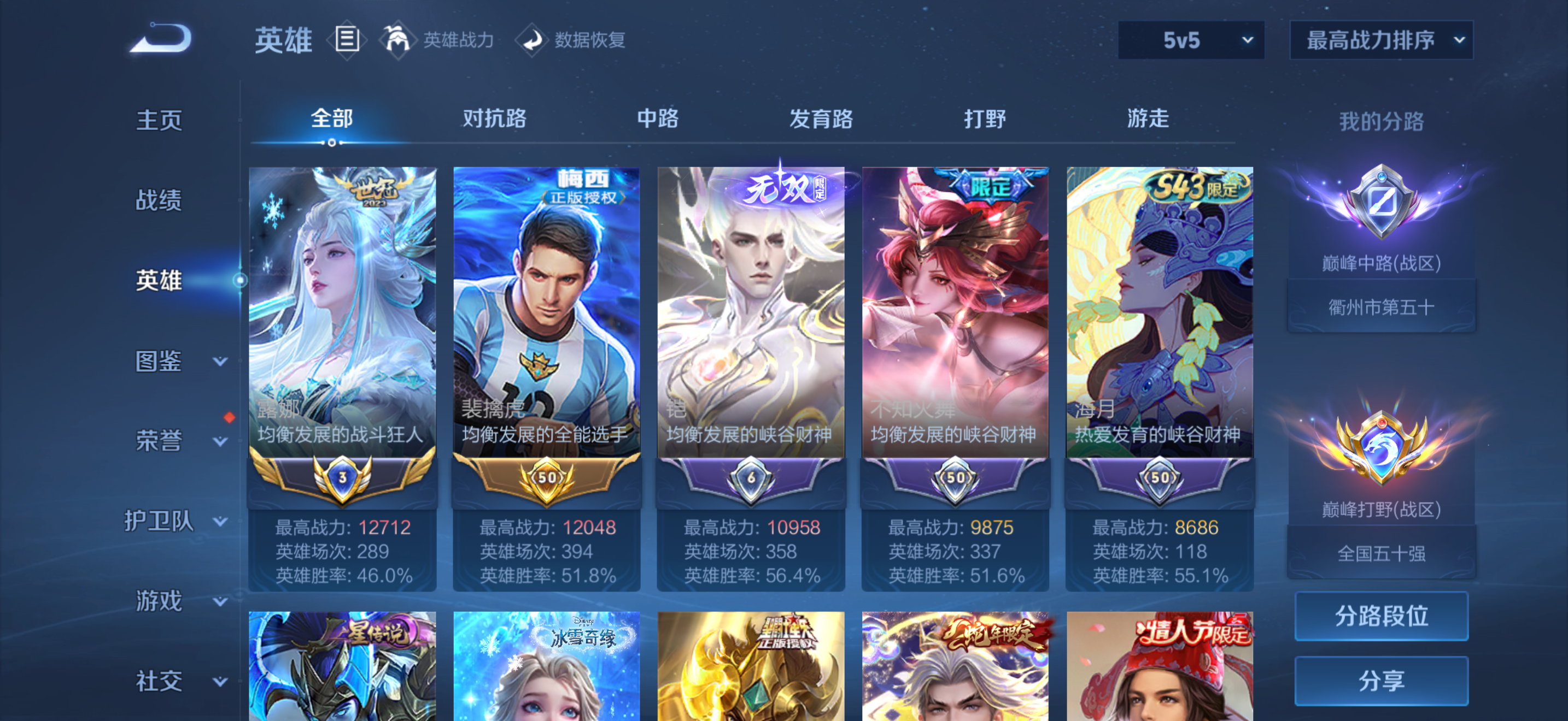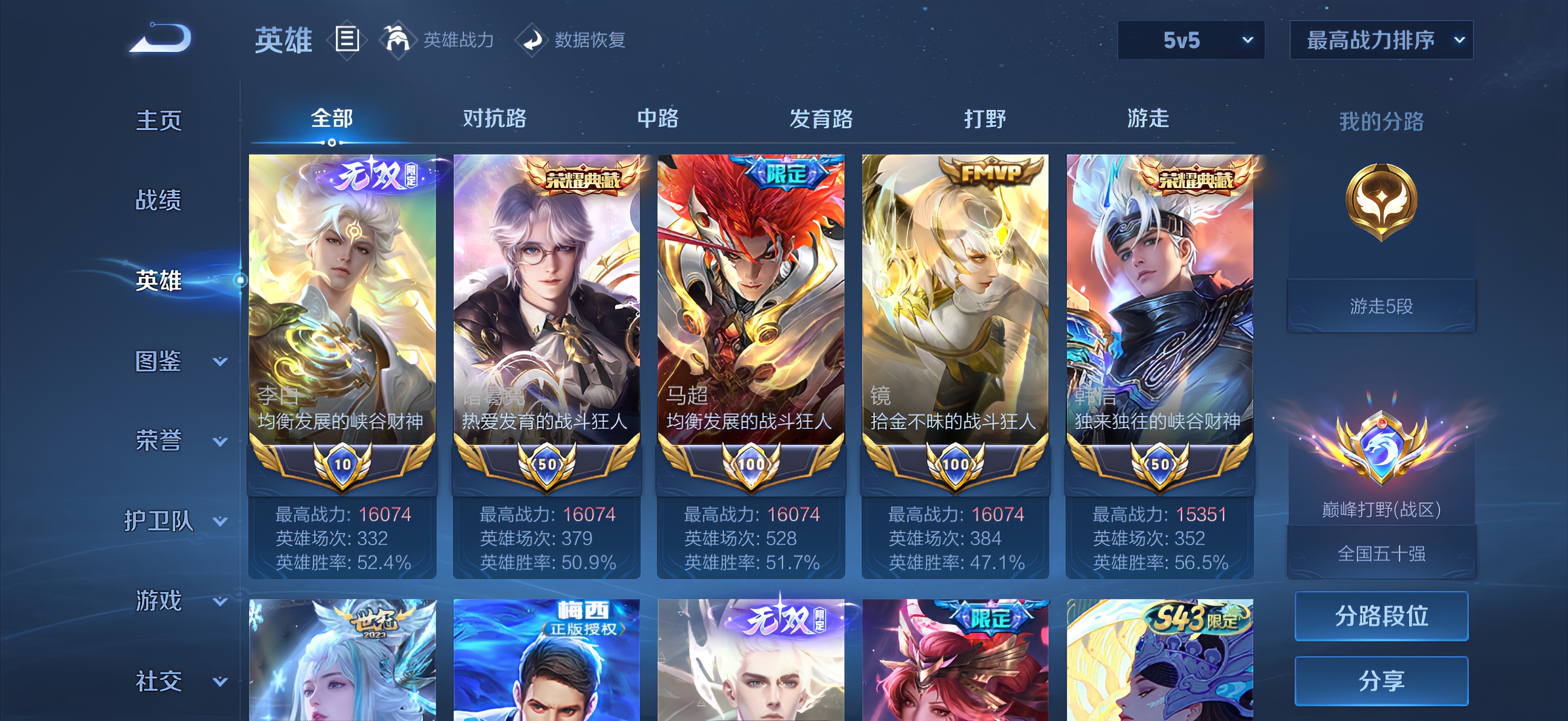 极品打野号六热门小国数字标李白露娜国小国镜马超诸葛韩信历史全国五十强巅峰打野v9有梅西全是热门皮