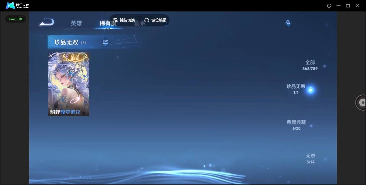 V10 6典藏 1珍品无双 5无双 6珍品传说 88传说 129英雄 568皮肤 可二次 可修改实名