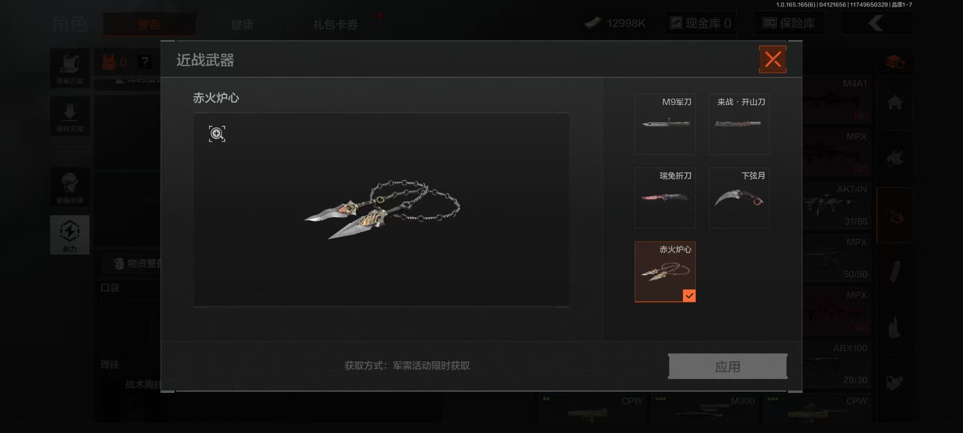 【近战武器】赤火炉心,瑞兔折刀,下弦月,来战·开山刀