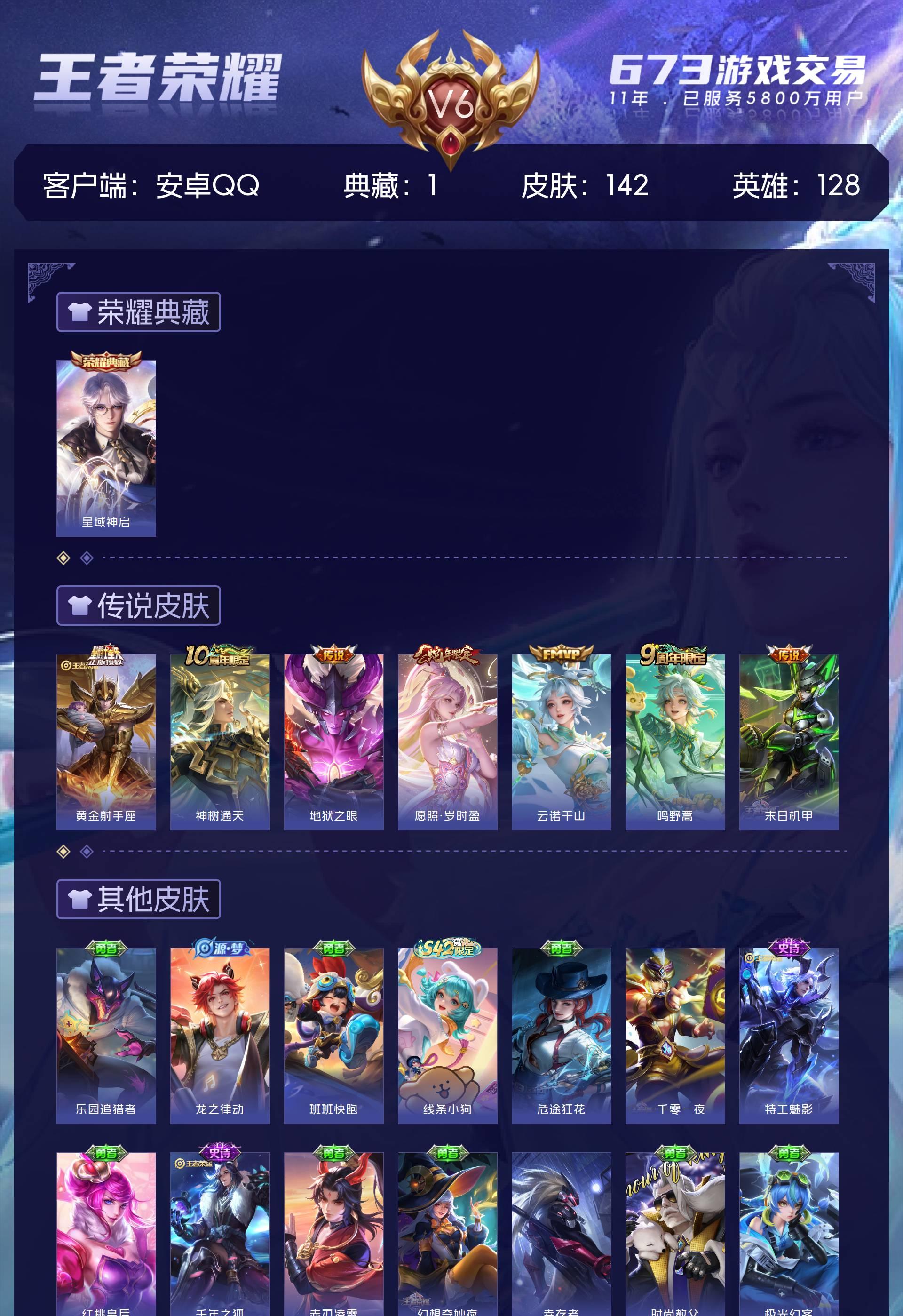 V6 皮肤142 英雄128 最强王者 荣耀典藏1 传说7