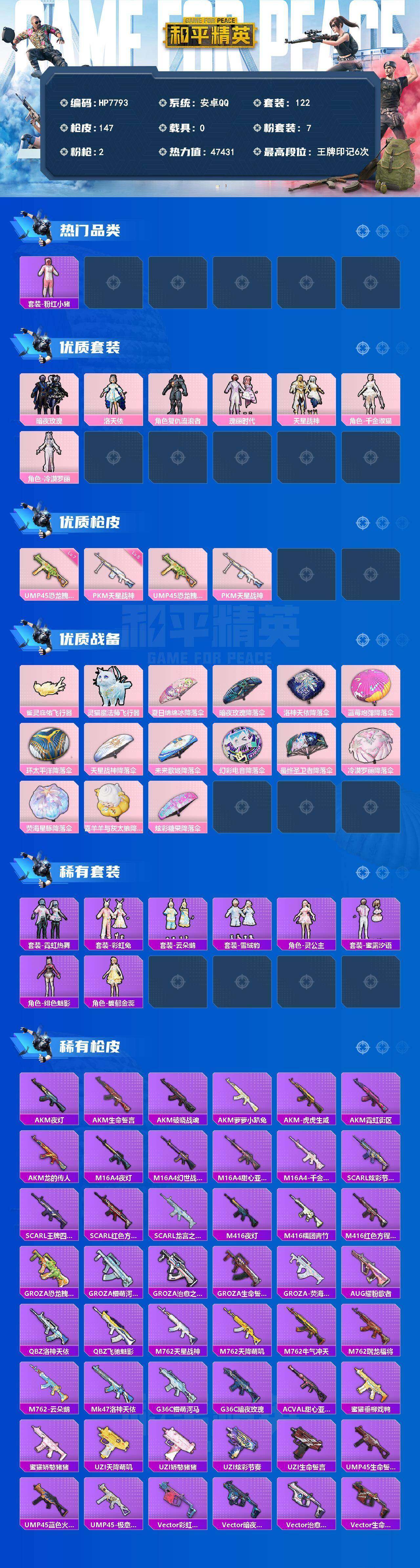 公主号-粉红小猪,暗夜玫瑰,洛天依,复仇流浪者,瑰丽时代,天星战神,千金淑猫,冷漠罗丽,UMP45恐龙拽拽七级,PKM天星战神五级 没战神框 HP7793-0载具-2粉色飞行器-47431热力值-6王牌印记-122套装-147枪皮
