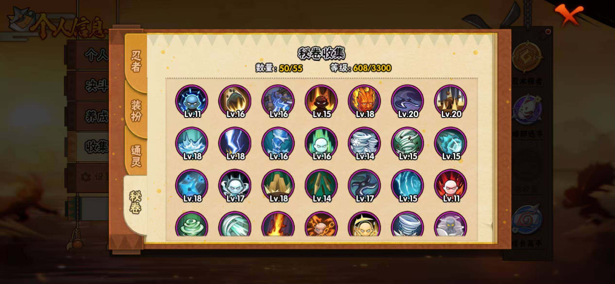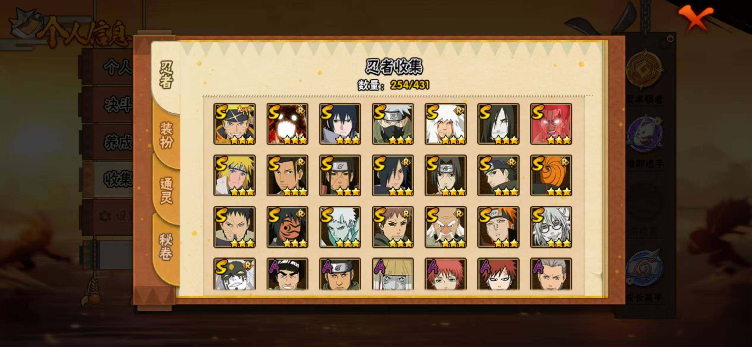 【S级忍者】:千手柱间「秽土转生」(3星),大野木「忍界大战」(3星),宇智波带土「忍界大战」(3星),宇智波鼬「须佐能乎」(3星),宇智波止水「须佐能乎」(3星),旗木卡卡西「须佐能乎」(3星),宇智波斑「木叶创立」(3星),千手柱间「木叶创立」(3星),罗砂「四代目风影」(3星),自来也「舞之豪杰」(3星),大蛇丸(3星),波风水门(3星),药师兜「仙人模式」(3星),神秘面具男「红夜之刃」(3星),迈特凯「死门」(3星),佩恩「天道」(3星),宇智波佐助「永