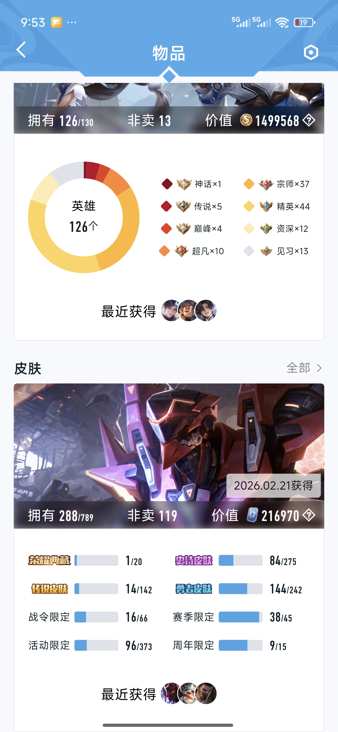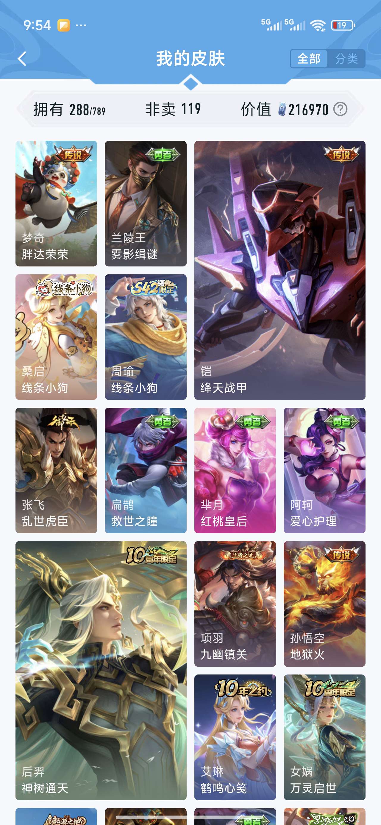和平升级枪已经全部满级,有升级飞行器,粉皮多,有猪脸,王者皮肤多传说,有一个典藏李白,洛克王国成体号