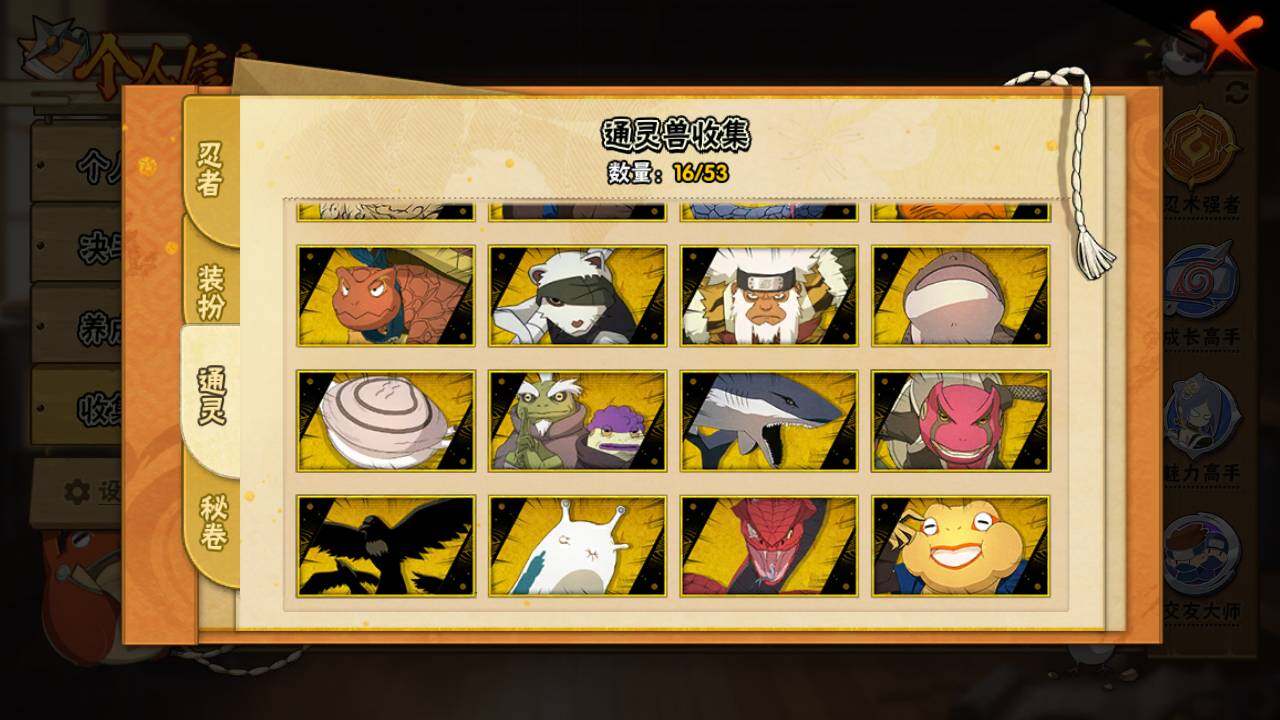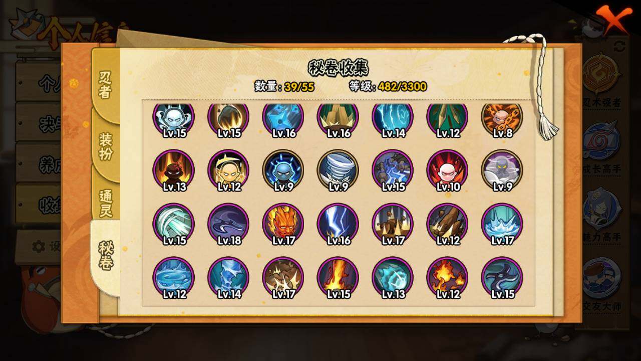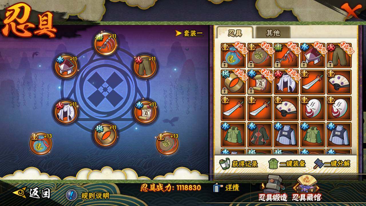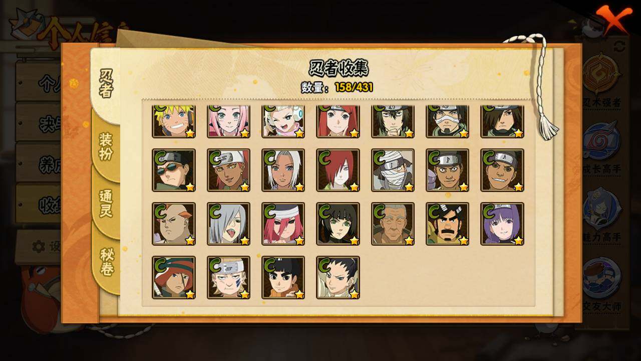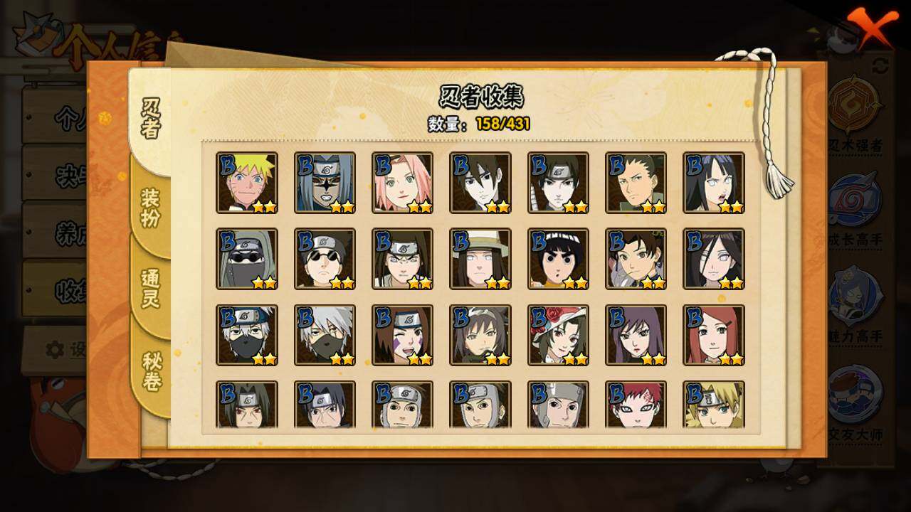 【S级忍者】:宇智波斑「秽土转生·解」(3星),宇智波带土「忍界大战」(3星),宇智波鼬「须佐能乎」(3星),旗木卡卡西「须佐能乎」(3星),宇智波斑「木叶创立」(3星),自来也「舞之豪杰」(3星),大蛇丸(3星),波风水门(3星),神秘面具男「红夜之刃」(3星),漩涡鸣人「九喇嘛连结」(3星),迈特