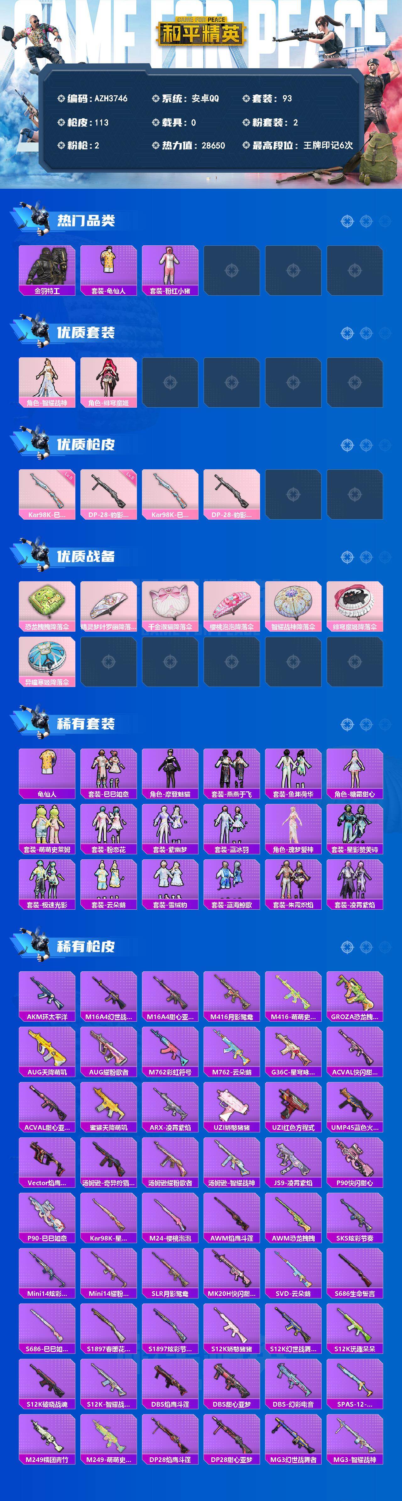 【AZH3746】安卓 手Q【萌萌史莱姆 糖霜甜心 摩登魅猫】2粉装-2特效枪-0载具-0粉色飞行器-28650热力值-6王牌印记-93套装-113枪皮