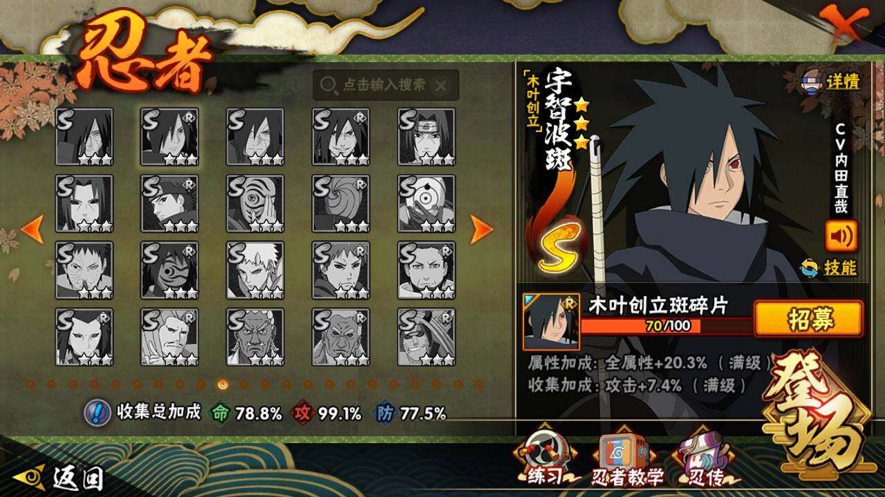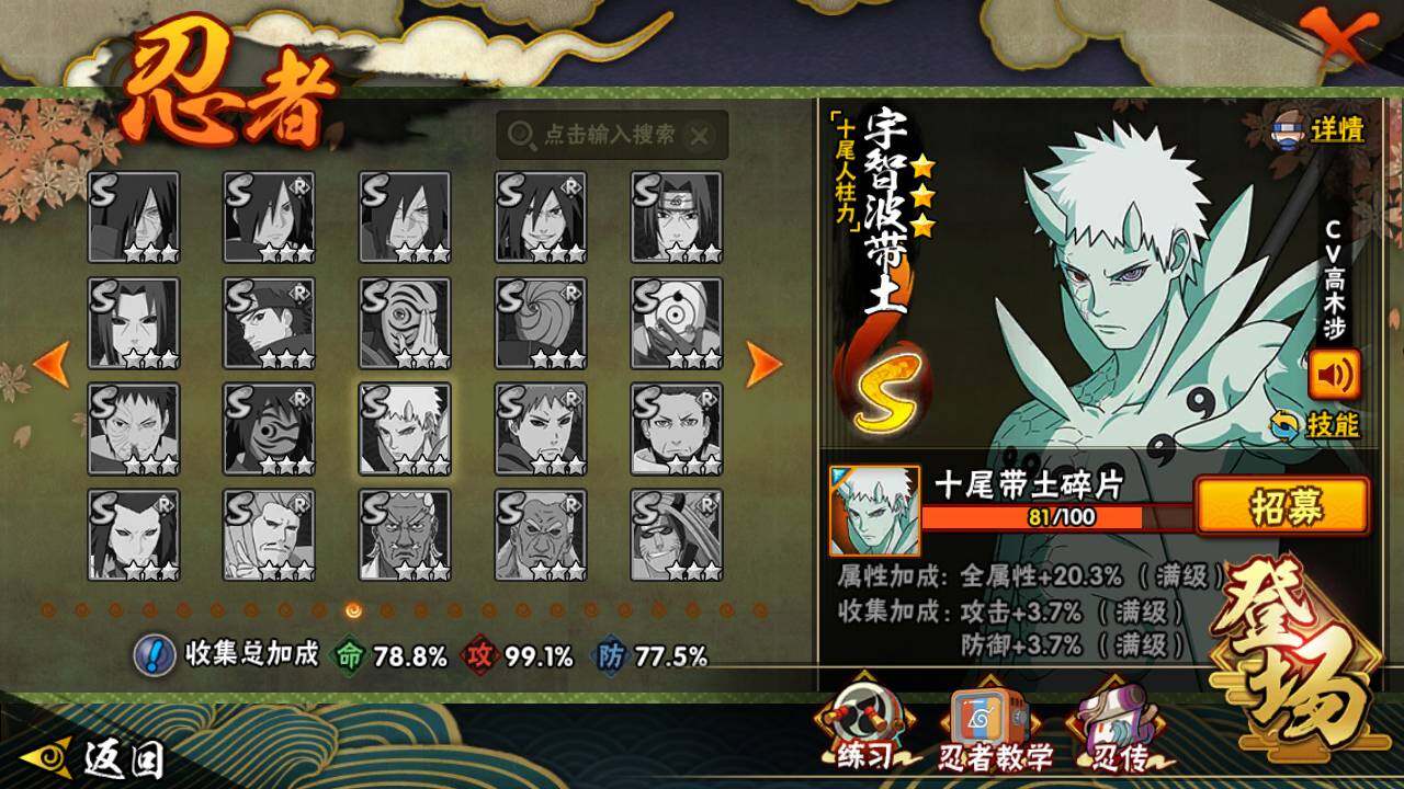 V10 1216万战力 13S-33A 木叶创立斑70片 红夜面具男80片 十尾带土81片 忍战大野木80片 桃式70片 金式80片 TT1942