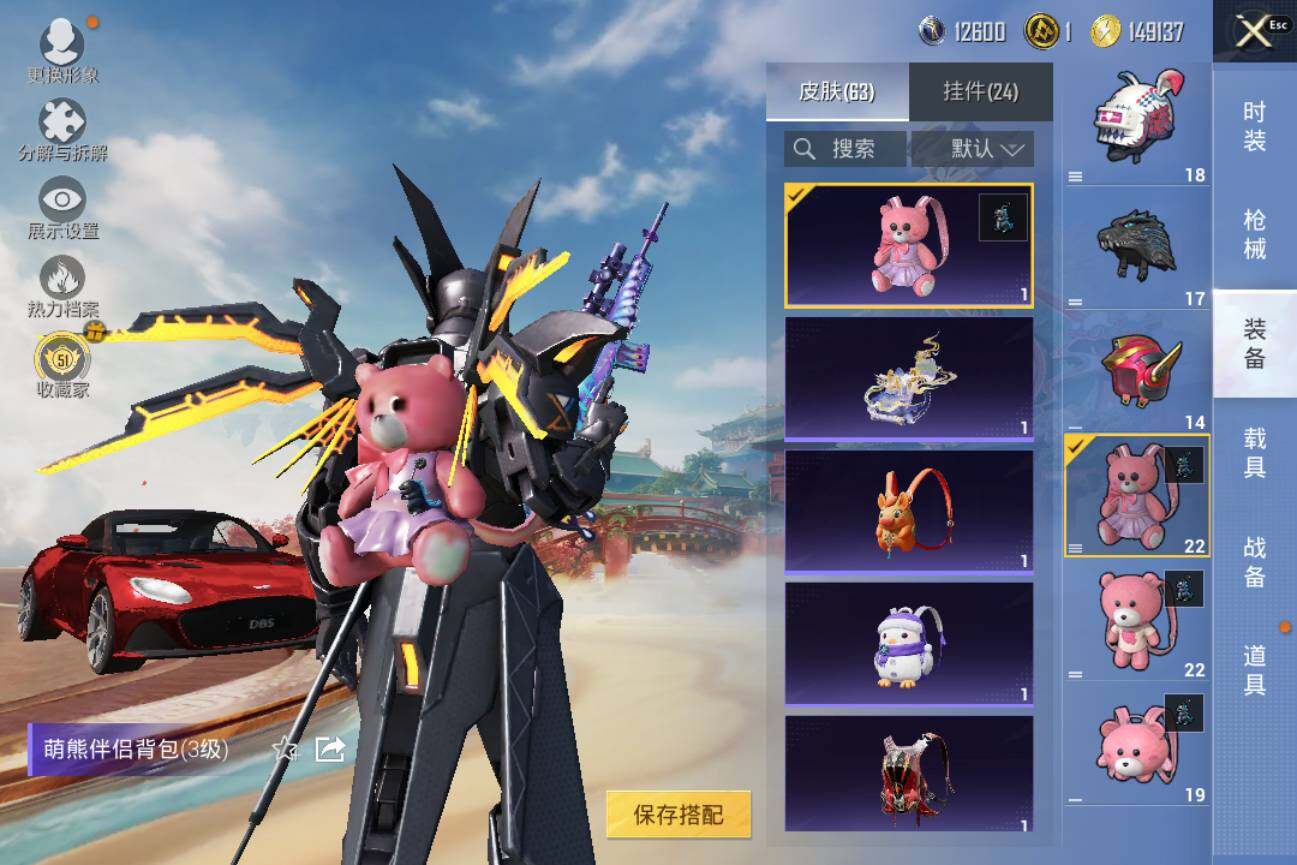 【A8945】安卓【小号/萌熊伴侣背包/3粉装-3特效枪-1载具-2粉色飞行器】 手Q--42426热力值-6王牌印记-87套装-139枪皮