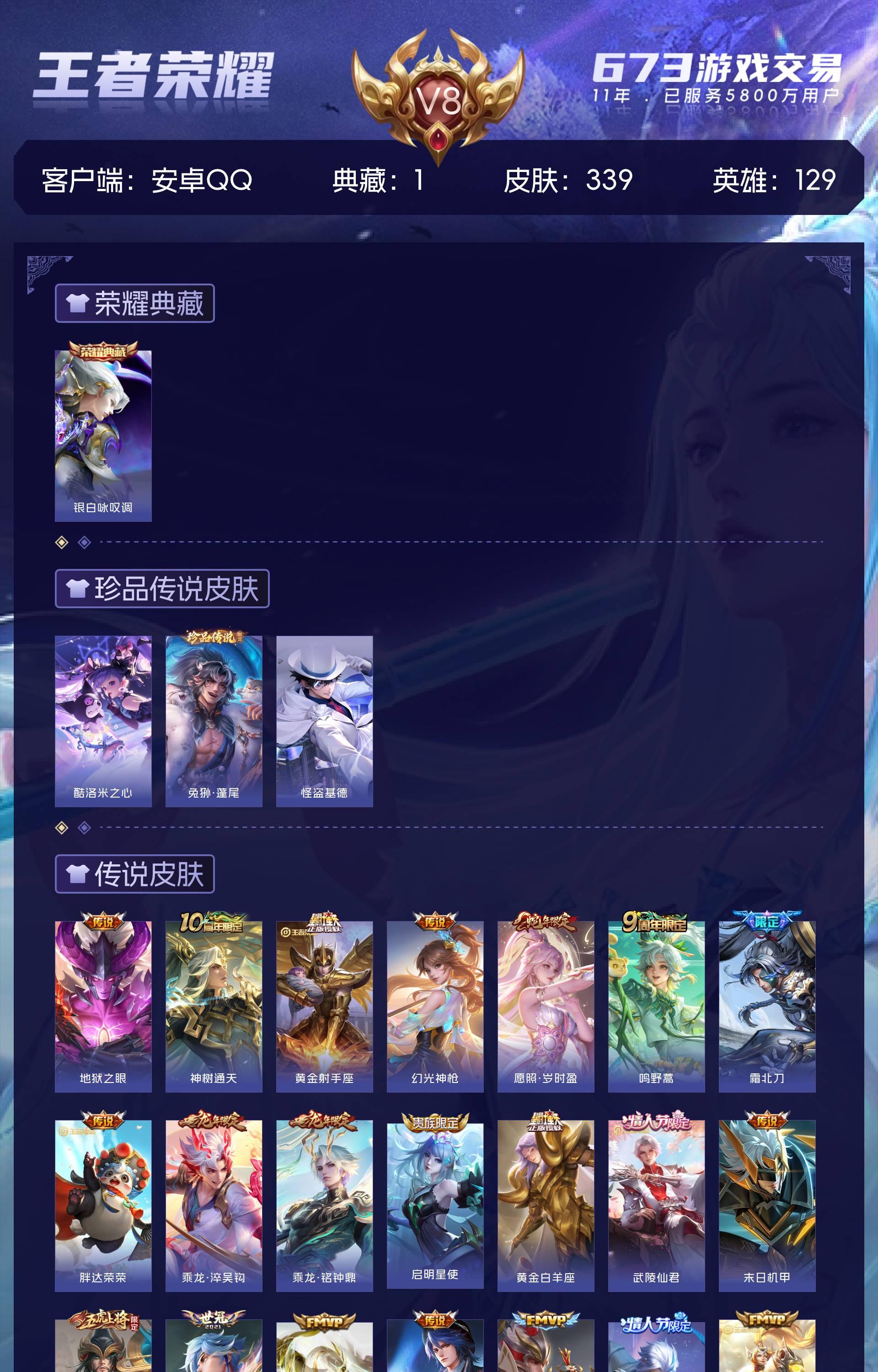V8 皮肤339 英雄129 至尊星耀 荣耀典藏1 珍品传说3 星传说3 传说25